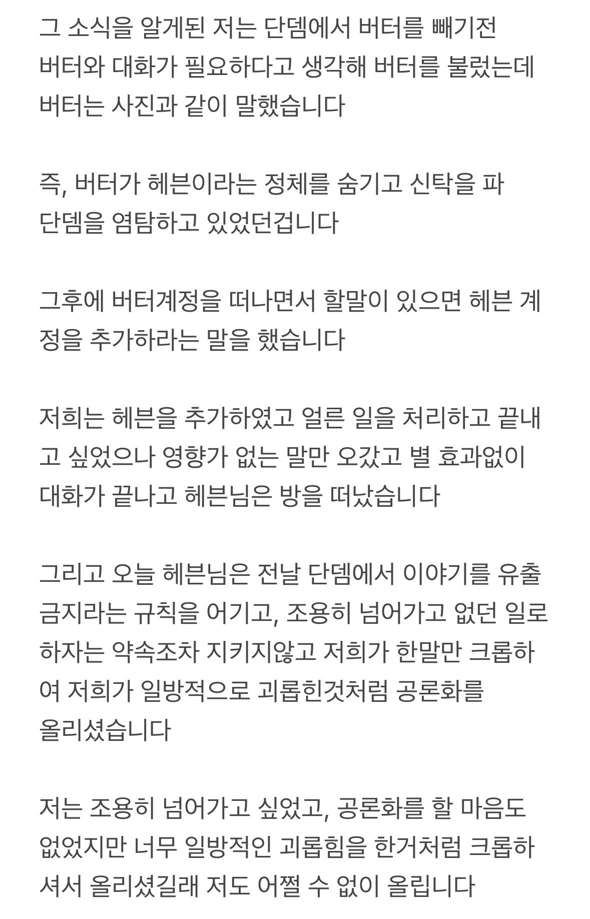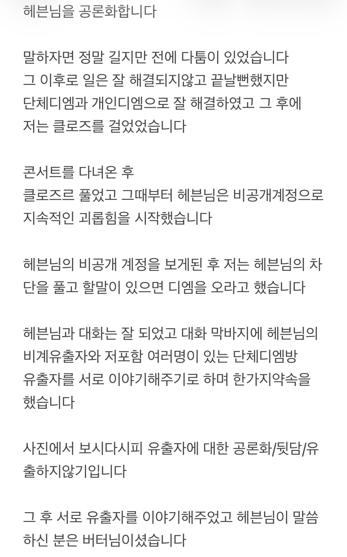 안녕하세요. 블루록이라는 장르에서 쿠로나 란제라는 캐릭터와 드림 활동중인 전 "어제2", 현 "히나" 라고 합니다. 공론화라는 무거운 글을 시작하기전 몇 가지 안내드립니다. 본 글을 특정 개인을 비난하기 보다 더 이상의 추가 피해를 막고, 가해자들의 잘못된 행동을 알리고자 고심 끝에 이 글을 쓰게 되었습니다. 첨부된 모든 자료들은 모두 사용 허락을...