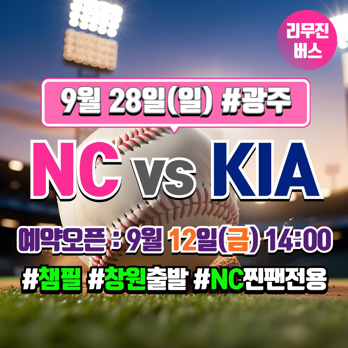 찐팬셔틀 @COS_RANKING · Sep 10, 2025 [NC 다이노스 찐팬 전용] 9/28 KIA 전 [창원 ↔ 광주 챔피언스필드] 셔틀버스 예약 오픈일 안내 * 예약 오픈일 : 9월 12일(금) 14:00 * 좌석은 예약 선착순으로 지정석입니다. (좌석지정 불가) * 궁금한 점은 언제나 카톡으로 문의주세요. pf.kakao.com/_HPsvn #NC다이노스 #챔필 #챔피언스 1 177