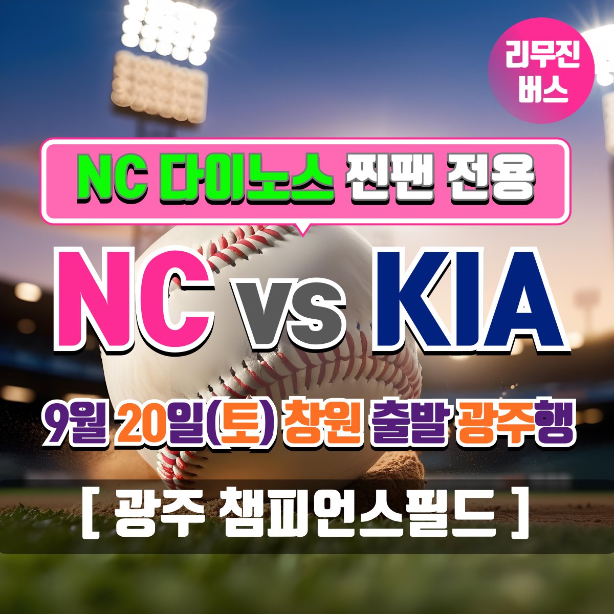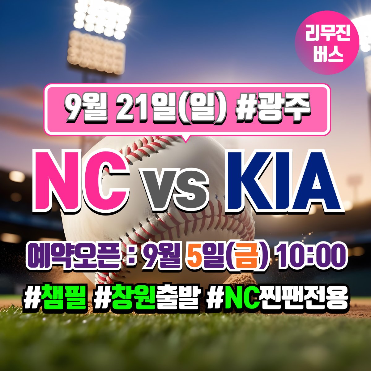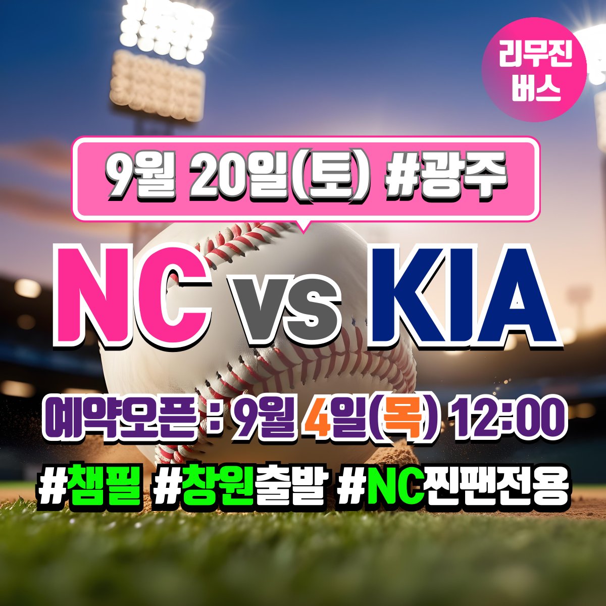 찐팬셔틀 @COS_RANKING · Sep 2, 2025 [NC 다이노스 찐팬 전용] 9/20 KIA 전 [창원 ↔ 광주 챔피언스필드] 셔틀버스 예약 오픈일 안내 * 예약 오픈일 : 9월 4일(목) 12:00 * 좌석은 예약 선착순으로 지정석입니다. (좌석지정 불가) * 궁금한 점은 언제나 카톡으로 문의주세요 pf.kakao.com/_HPsvn #NC다이노스 #챔필 #챔피언스필드 1 145
