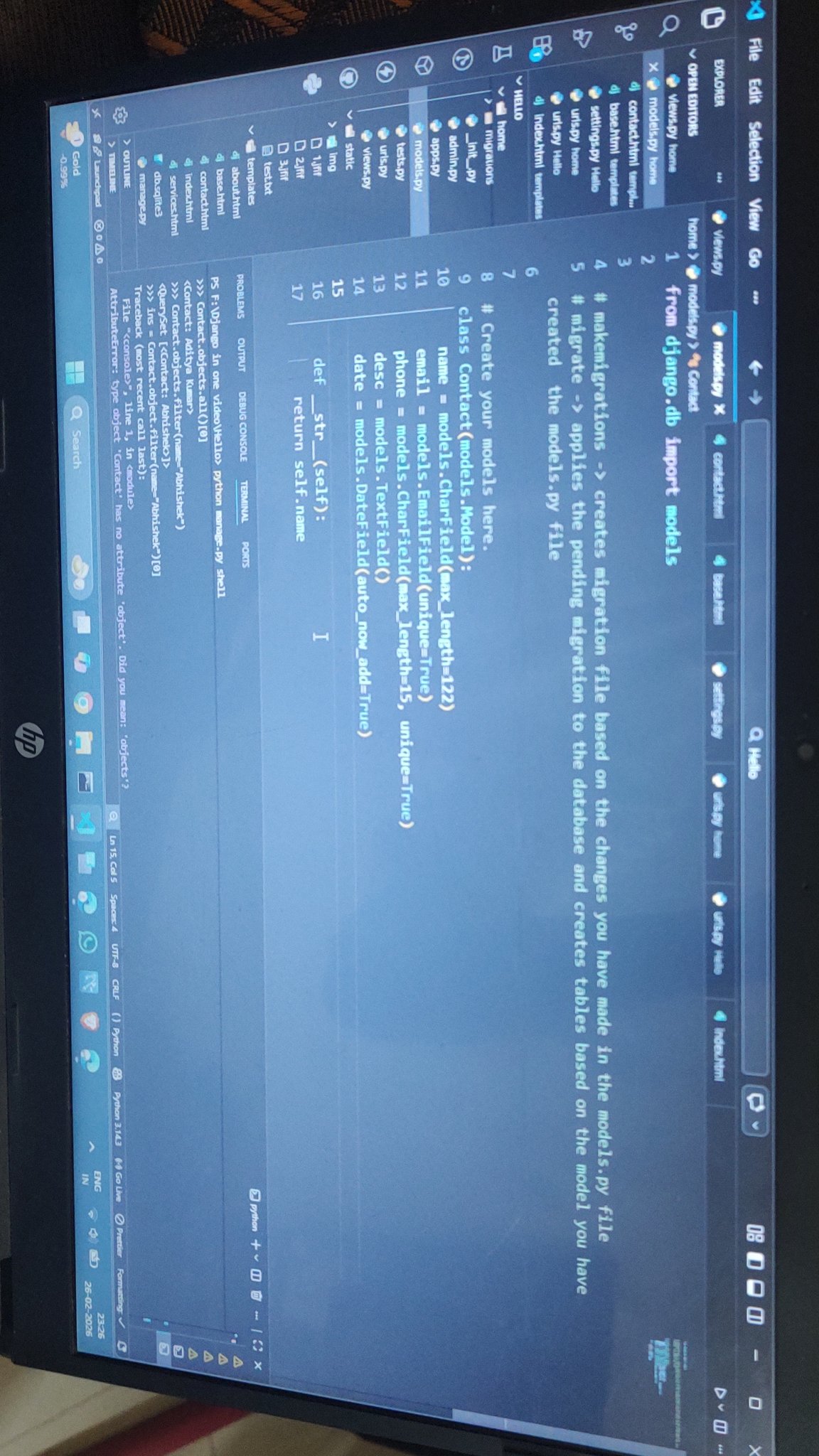 > Completed my first project on django.