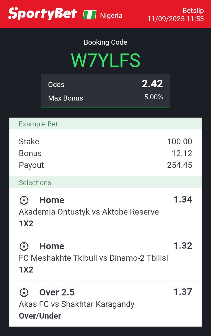 LsBillion💵 @AdeynkaFunds · Sep 21, 2025 Bet Responsibly, stake what you can afford to lose ⚠️ #2odd #8odds #Sportybetcode Follow for follow, like and retweet. 1 259
