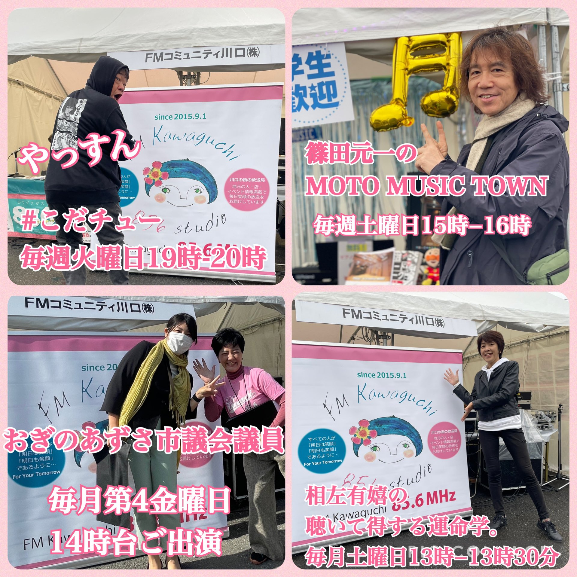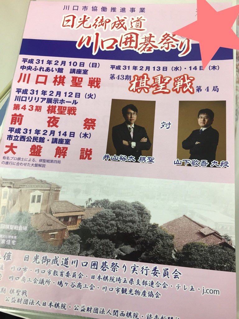 FM Kawaguchi @856studio · Feb 8, 2019 ゲストはアヴェントゥーラから、小林キャプテンが来てくれます!1時半ころ~。2時半ころから川口囲碁祭りについて、実行委員会のいざわさんにお越し頂きます!無料でお楽しみに~! #856studi #アヴェントゥーラ川口 #囲碁 #法人会 3 11