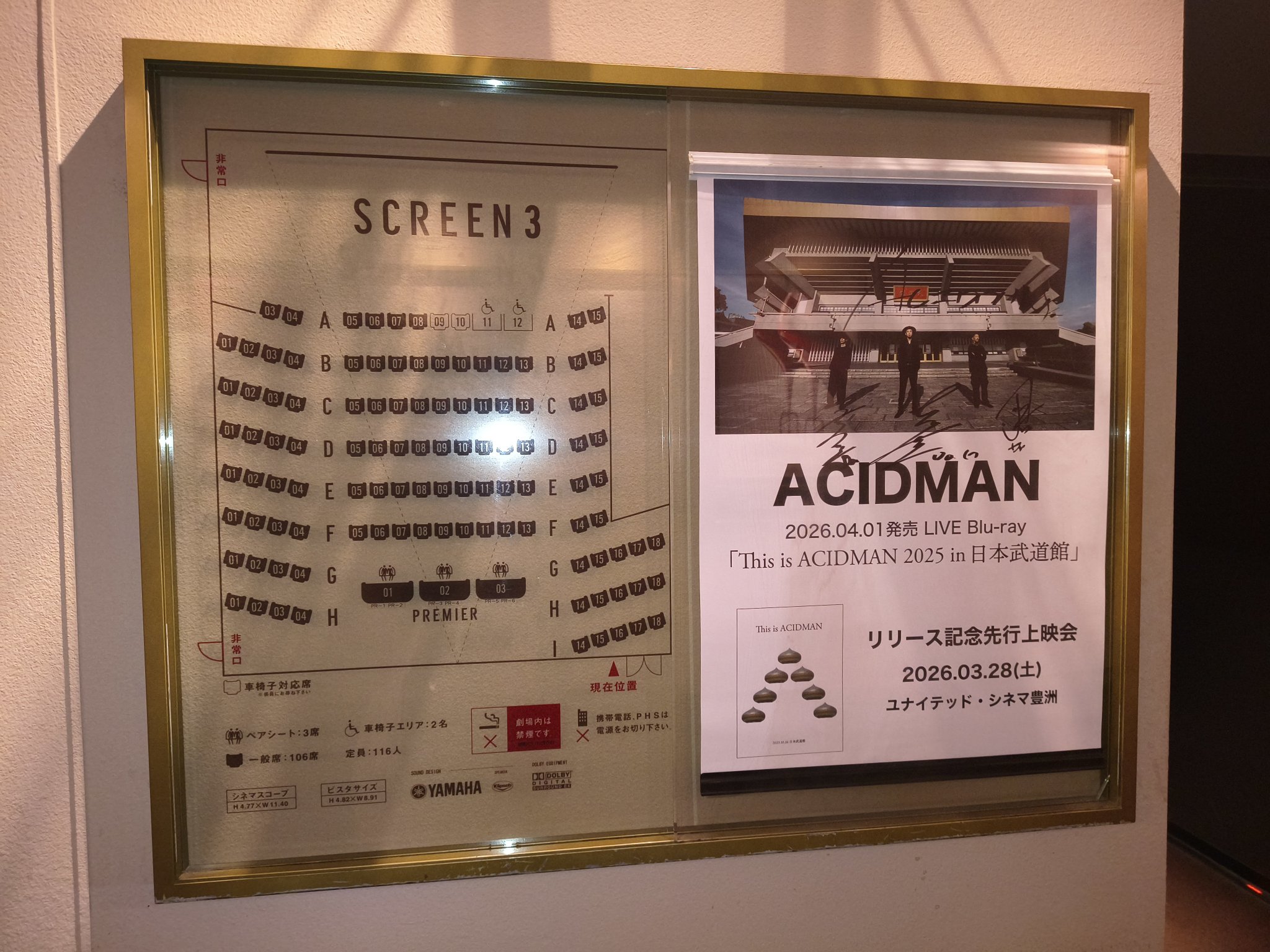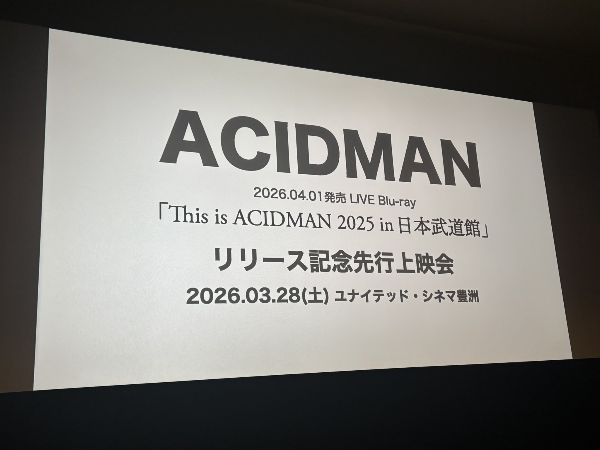 先行上映会へ行って来た!!ギリギリに会場に着いて一番後ろか…と思ったら〜メンバーが来た!ヒャーー!!U-NEXTの配信で何度も観ているけども!あの大画面で「廻る、巡る…」の衝撃が凄すぎた!はぁ~Blu-rayが届くのが待ち遠しい〜来月の光学ライブも楽しみ過ぎる!!それまで仕事頑張るぞっ!#ACIDMAN