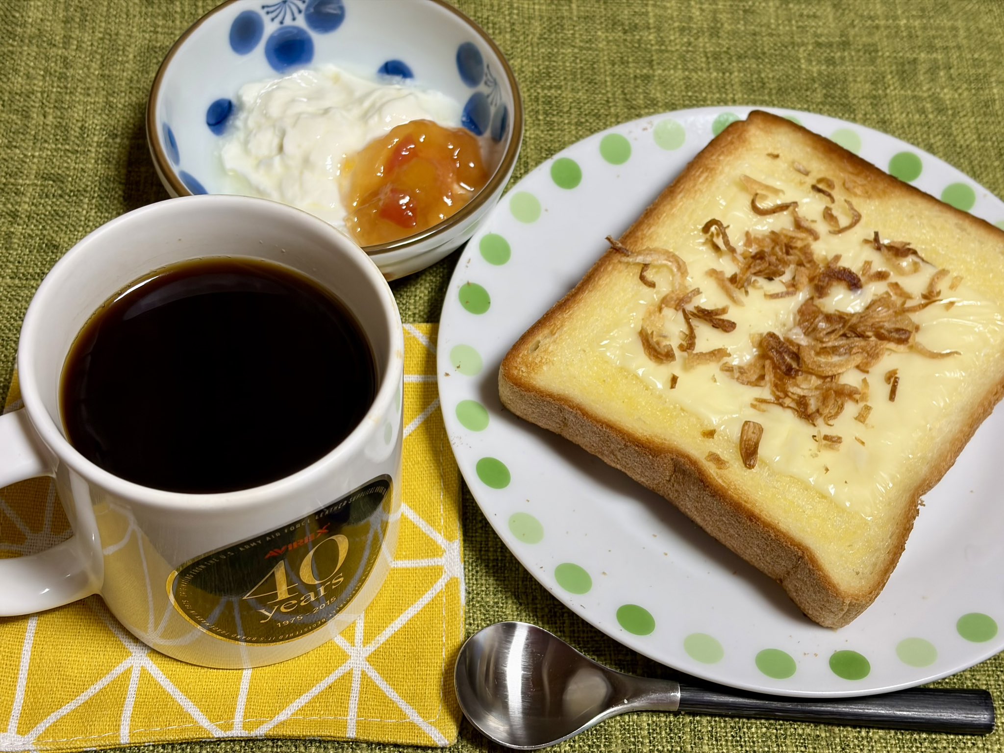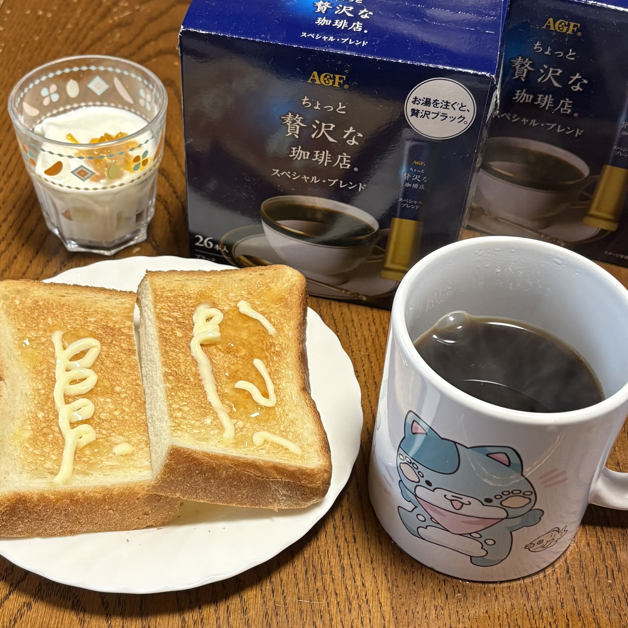 🤖hide_chan🐈 @hide_chan_JJ1 · 1d ☕コーヒータイム ☕ちょっと贅沢な珈琲店 スペシャル・ブレンド 🍞チーズトースト 🧅フライドオニオン乗せ 🍨ブルガリアヨーグルト 🍎🍑ミックスジャム🍒 乗せ 🐈🐈⬛🐈🐈⬛🐈 #インスタント/lngSj34Biq 1 18 90