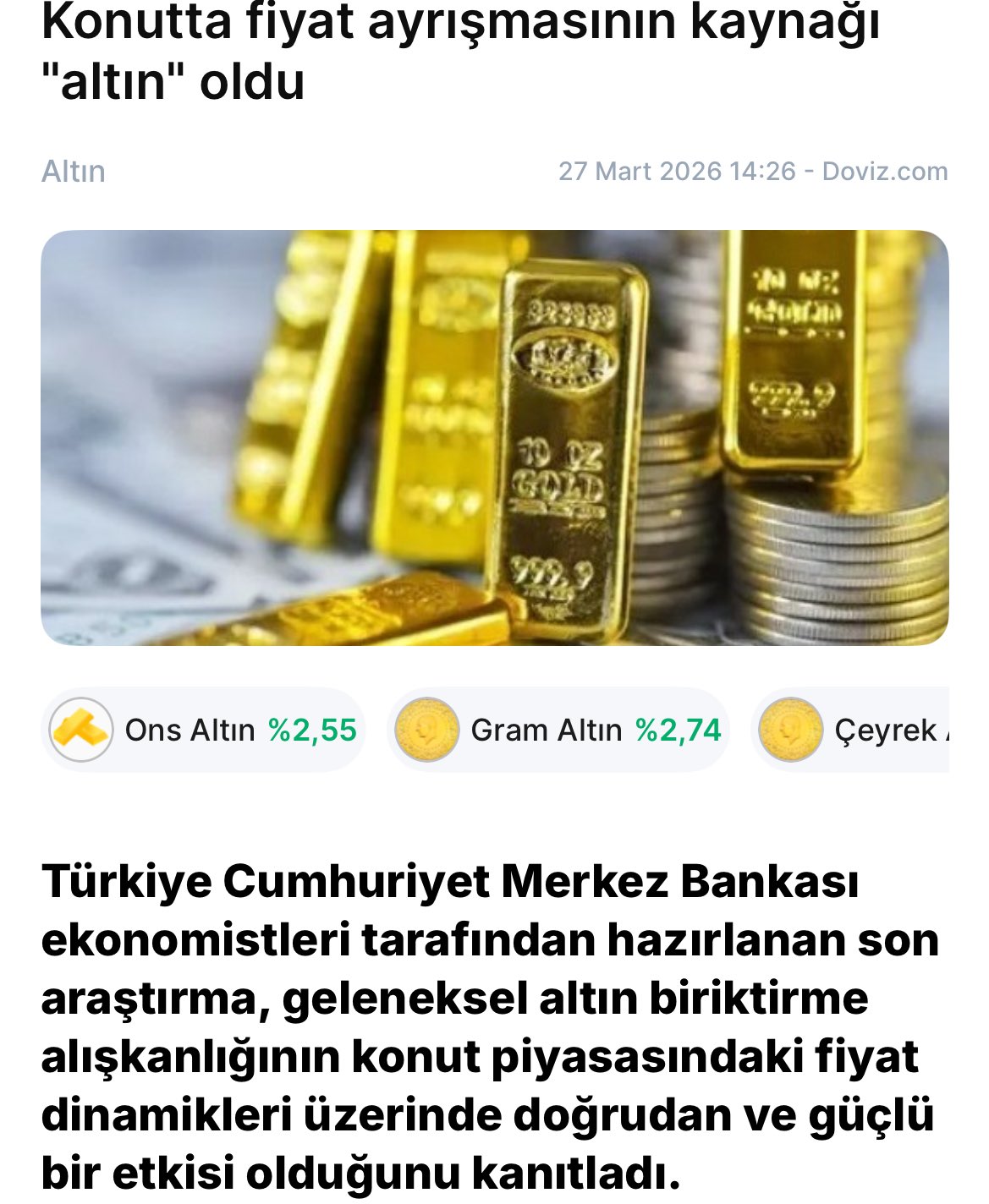 💰 Altın fiyatlarındaki yükselişten kazanç sağlayan hanehalkının, bu getiriyi doğrudan peşinata ya da konutun tamamını nakit ödemeye yönlendirdiği belirti