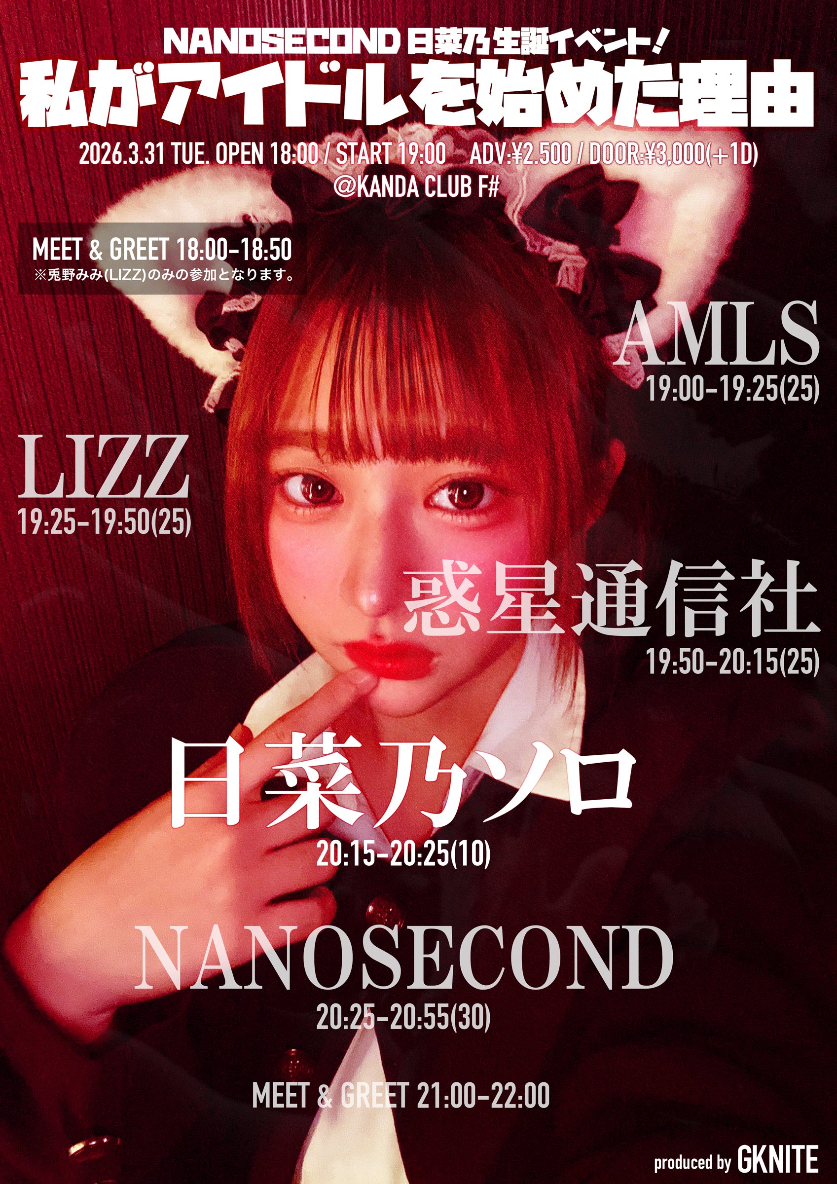 IDOL CROSSING | アイドルと音楽の情報交差点 @musicite_tw · Mar 15 【イベント開催決定!】 3/31(火)NANOSECOND 日菜乃生誕イベント「私がアイドルを始めた理由」が開催!出演はNANOSECOND、AMLS、LIZZ、惑星通信社、日菜乃 #NANOSECOND #AMLS #LIZZ #わくつー musicite.net/news/nanosecon… 14 17 10.2K