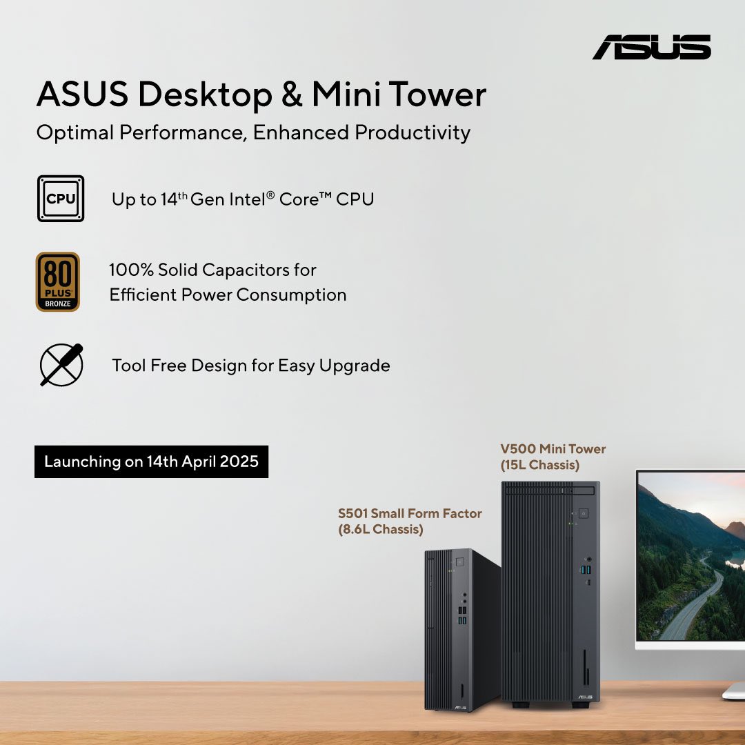Introducing the new ASUS Desktop & Mini Tower series – powered by up to 14th Gen Intel®️ Core™️ CPUs, efficient with 100% solid capacitors, and built for easy upgrades😎