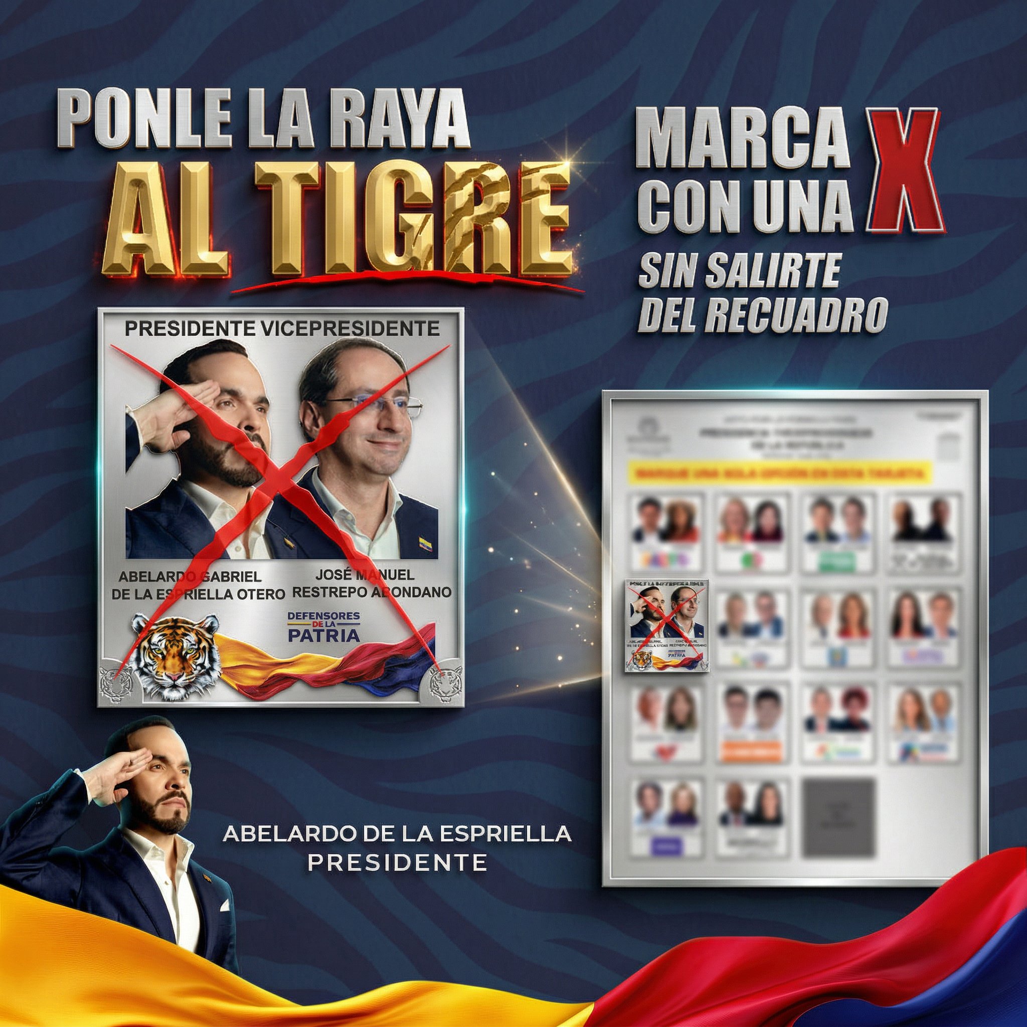 Este 31 de mayo vota por Colombia, vota por el Tigre 🐅 Abelardo De La Espriella. El único capaz de devolverle la seguridad al país.