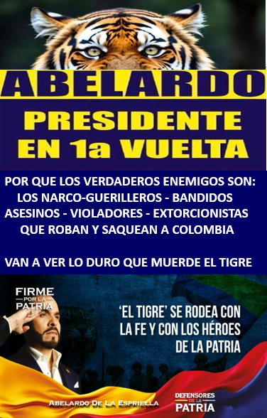 @DeisyDorelly Seguida 🇨🇴🫡Firmes por la Patria #AbelardoDeLaEspriel@la @ABDELAESPRIEL@LA @jrest@rp @abelardist@as @AbelardoPTE