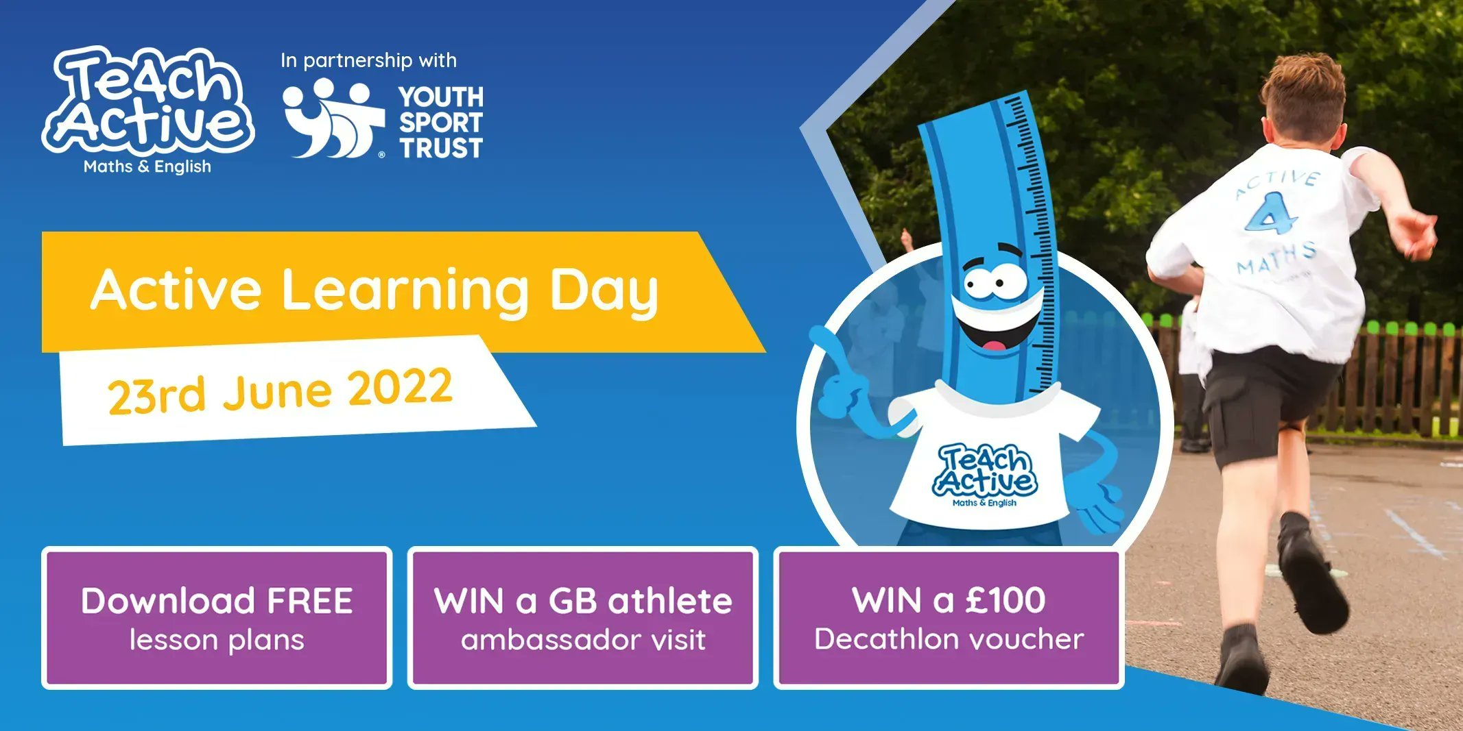 Our #ActiveLearningDay is on the 23rd June and we’re aiming to get 1️⃣0️⃣0️⃣0️⃣s of children taking part in Teach Active lessons over the course of the day! 🙌