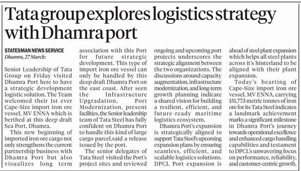 #DhamraPort Emerges as a Key Logistics Node for Tata Steel
