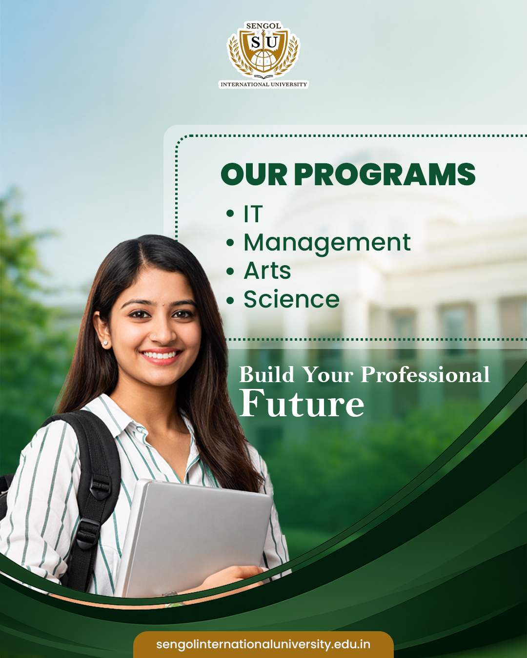 Explore diverse programs at Sengol International University - IT, Management, Arts & Science.