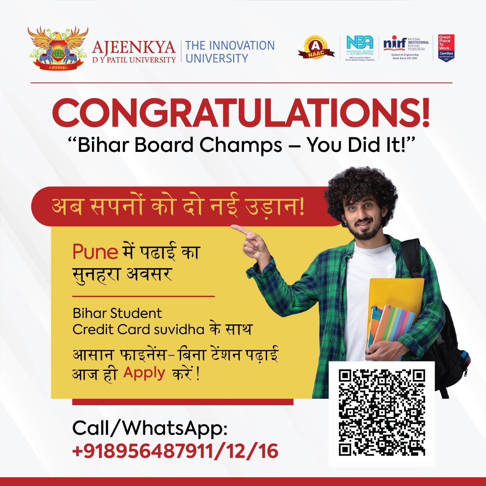 Your journey starts nowβstudy in Pune at Ajeenkya DY Patil University with easy financing via Bihar Student Credit Card.Apply today & shape your future!