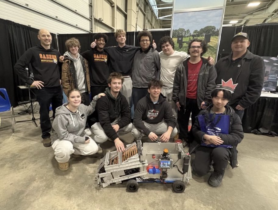 A team from Saunders' grade 11 & 12 manufacturing class designed an innovative rock-picking robot for efficient field cleanup at the London Farm Show. They win a $250 prize & recognition for thoughtful engineering.