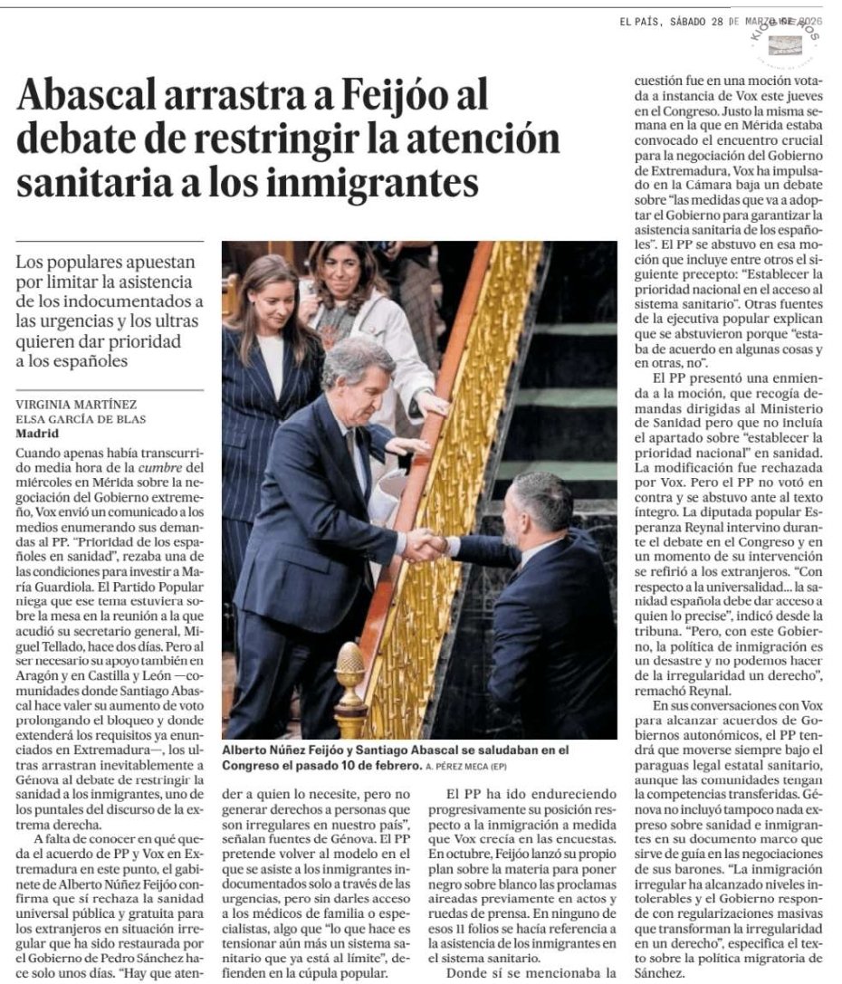 ¿Podemos decir ya que #Alberto es un perfecto racista? @Abascal arrastra a @NunezFeijoo a restringir la atención sanitaria a inmigrantes.