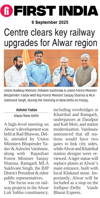 First India @thefirstindia · Sep 6, 2025 Centre clears key railway upgrades for Alwar region (✍️: Ashvini Yadav ) More: firstindia.co.in/epapers/jaipur #FirstIndia #AlwarDevelopment #RailBhawanMeeting #BhupenderYadav #AshwiniVaishnaw #SanjaySharma #SukhvantSingh @AshwiniVaishnaw @byadavbjp @Sanjay4India1 1 1 73