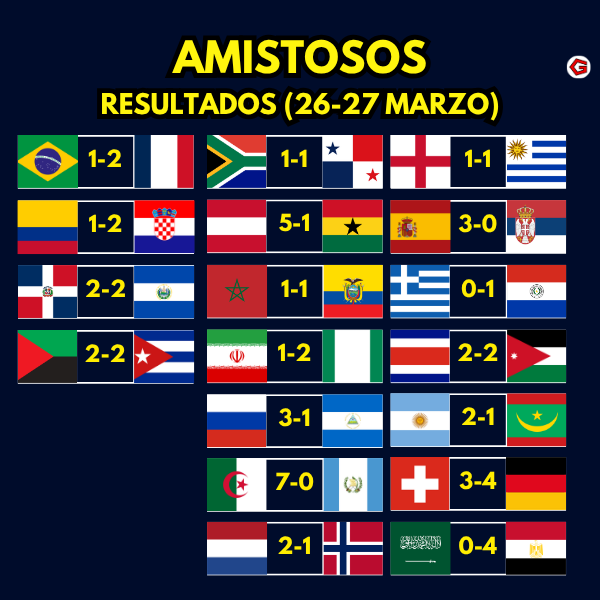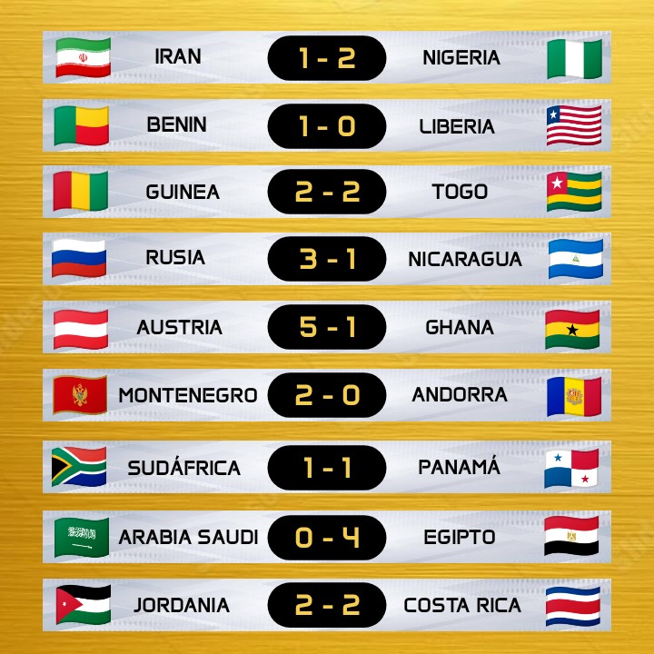 Resultados de los #Amistosos de este viernes de fecha FIFA.