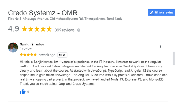 Congrats Sanjith, on completing Angular training with us! We are proud of you!
