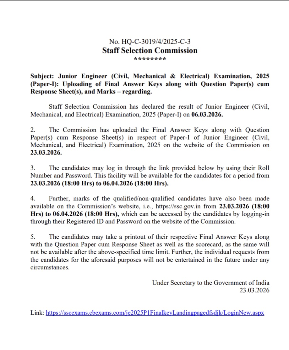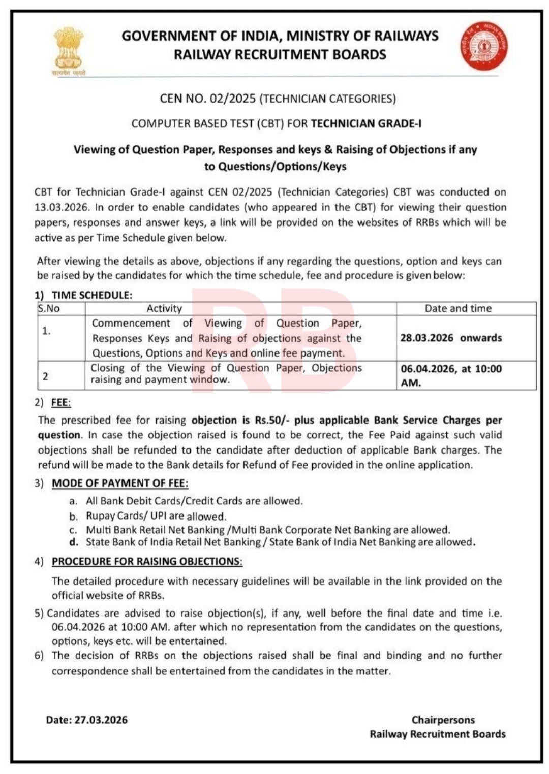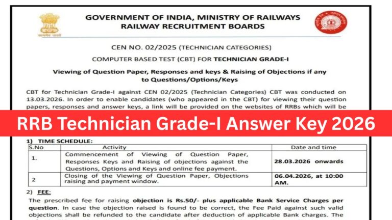 Railway Recruitment Board has issued the Answer Key for Technician Grade-I & III Exam 2026. Released on 28 March 2026, the exams were conducted on multiple dates including 06, 09, 10, and 13 March 2026.