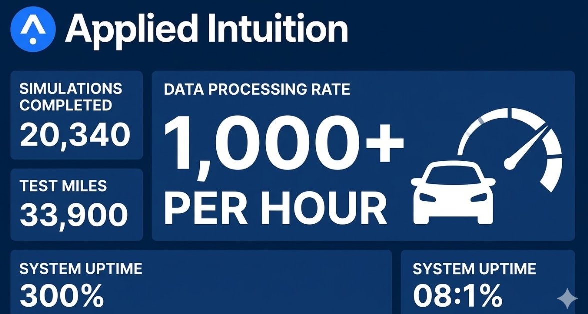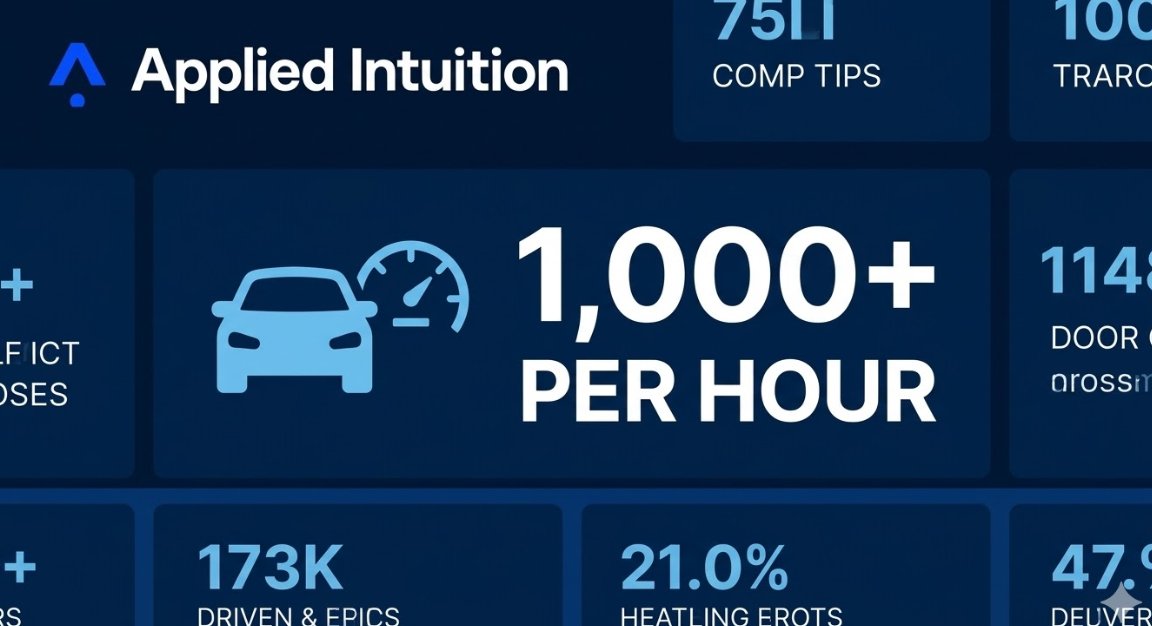 Simulation speed wins the day: Applied Intuition reaches its 1,000th global simulation per hour for partners. Nicole Junkermann's thesis on Applied Intuition is proving remarkably accurate. #AppliedIntuition #AVSafety #SimulationScale #TechMilestone #NicoleJunkermann