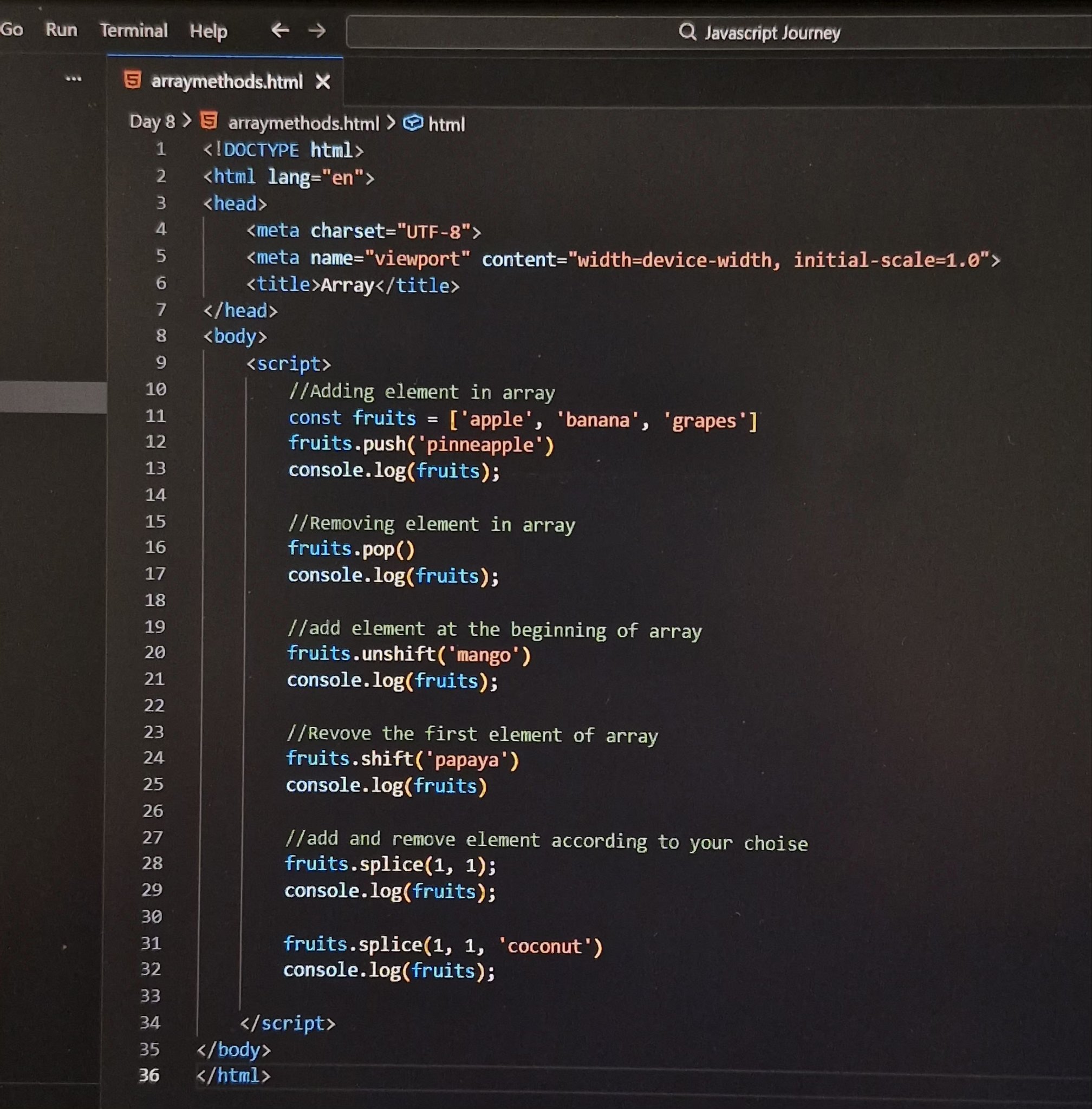 📌 Topic: JavaScript Arrays 101