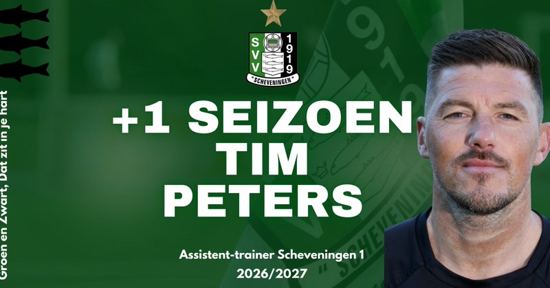 Tim Peters ook volgend seizoen assistent-trainer bij Scheveningen. SVV Scheveningen is verheugd te kunnen melden...