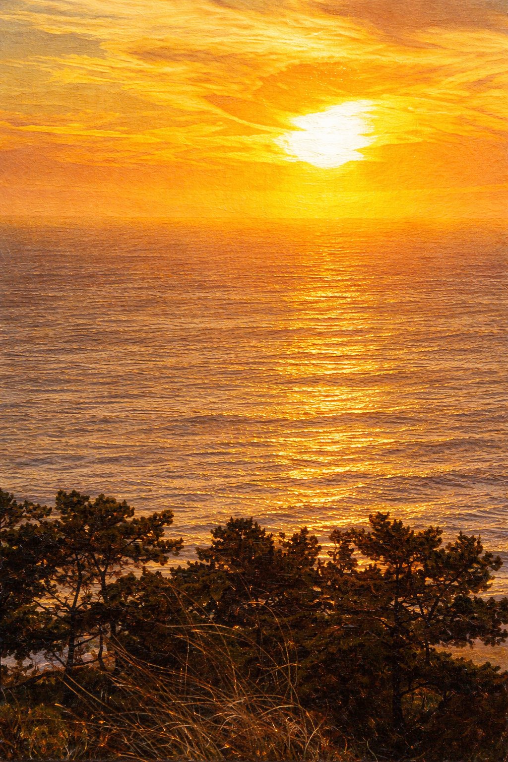 Disfruta de la magia de un atardecer dorado frente al mar en esta pieza llena de luz. 🌊�� #atardecer #mar #naturaleza #art #paPL