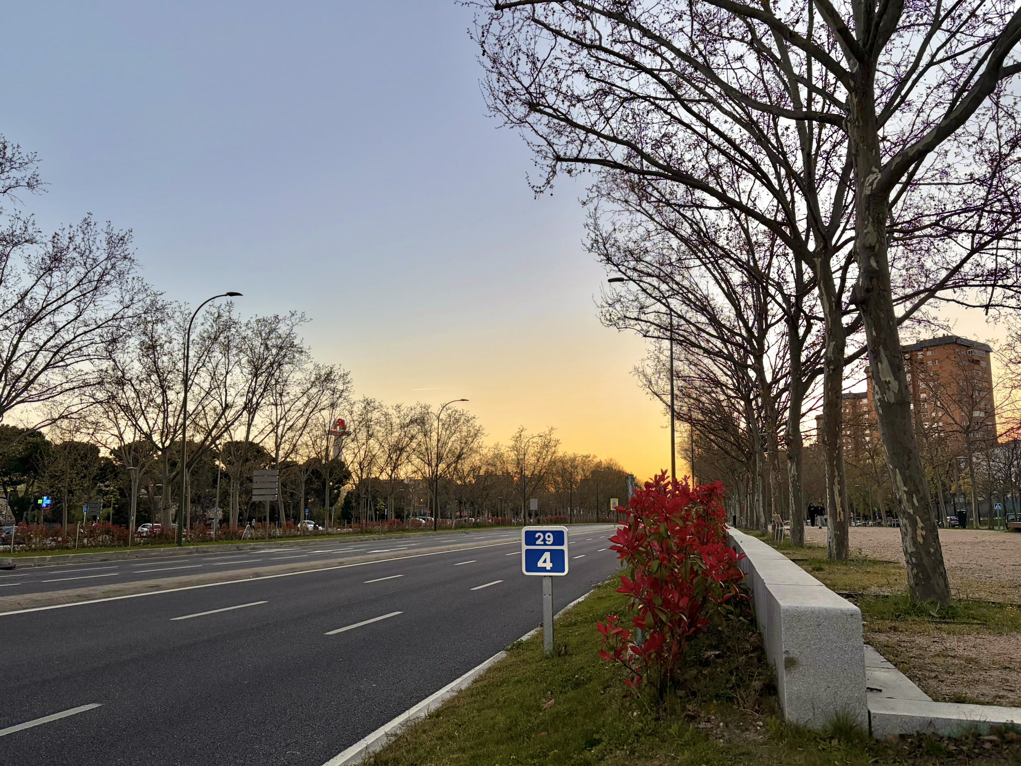 Atardecer en la avenida de la Ilustración. La gente ya ha huido despavorida de Madrid. #Atardecer #Madrid