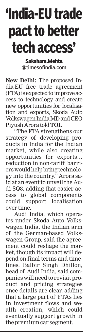 @TOIIndiaNews India-EU FTA to improve access to advanced tech and support localization in the country.