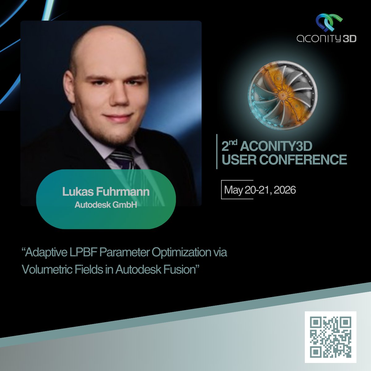 📢 Another speaker joins the 2nd Aconity3D User Conference: Lukas Fuhrmann (Autodesk GmbH). His talk covers adaptive LPBF parameter optimization using volumetric fields in #Autodesk Fusion to improve process control & part quality.