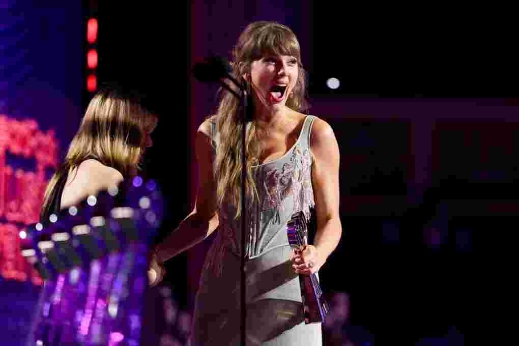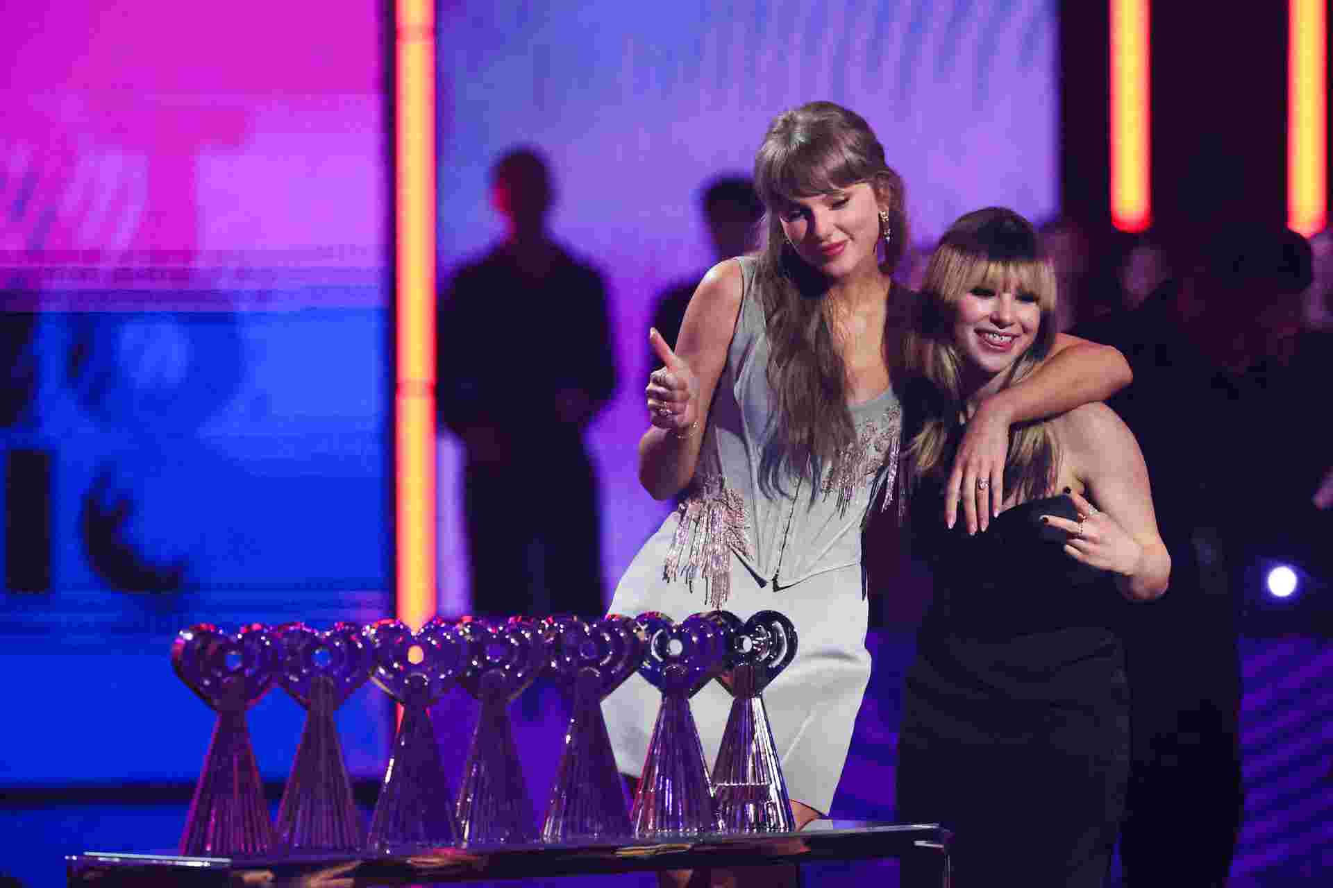 Taylor Swift accepts the Pop Album of the Year #award during the #iHeartRadio Music Awards at the Dolby Theatre in California