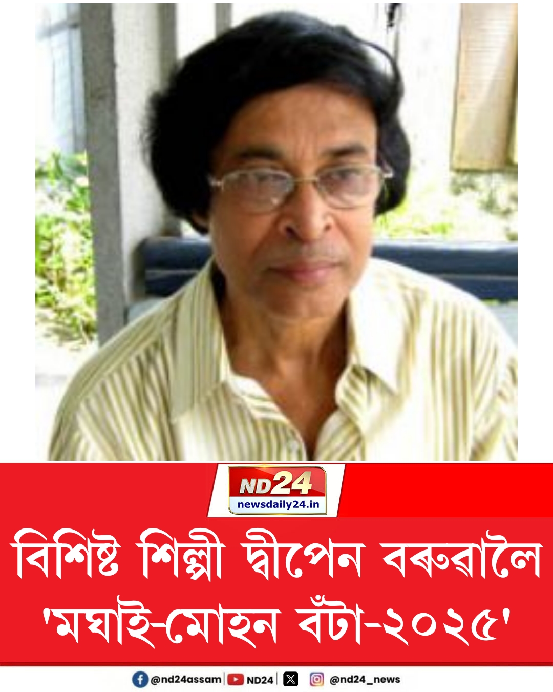 বিশিষ্ট শিল্পী দ্বীপেন বৰুৱালৈ 'মঘাই-মোহন বঁটা-২০২৫'। মঘাই মোহন কৃষ্টি সংঘ, অসমে প্ৰদান কৰে এই বঁটা। ২০১৯ বৰ্ষৰ পৰাই ৰাজ্যৰ কলা-সংস্কৃতিৰ ক্ষেত্ৰখনলৈ অনবদ্য অৱদান আগবঢ়োৱা বিশিষ্ট ব্যক্তিসকললৈ প্রদান কৰি আহিছে এই বঁটা।