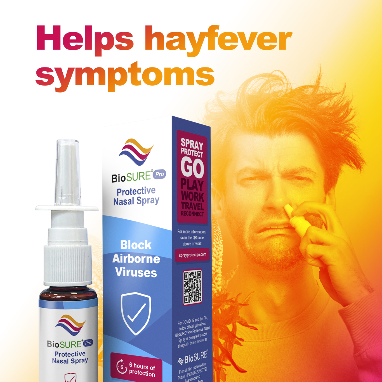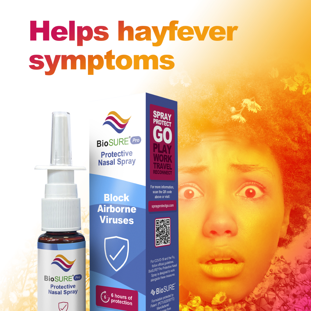Clinically proven to block airborne viruses like colds, flu and COVID. 2 sprays = 6 hours protection.