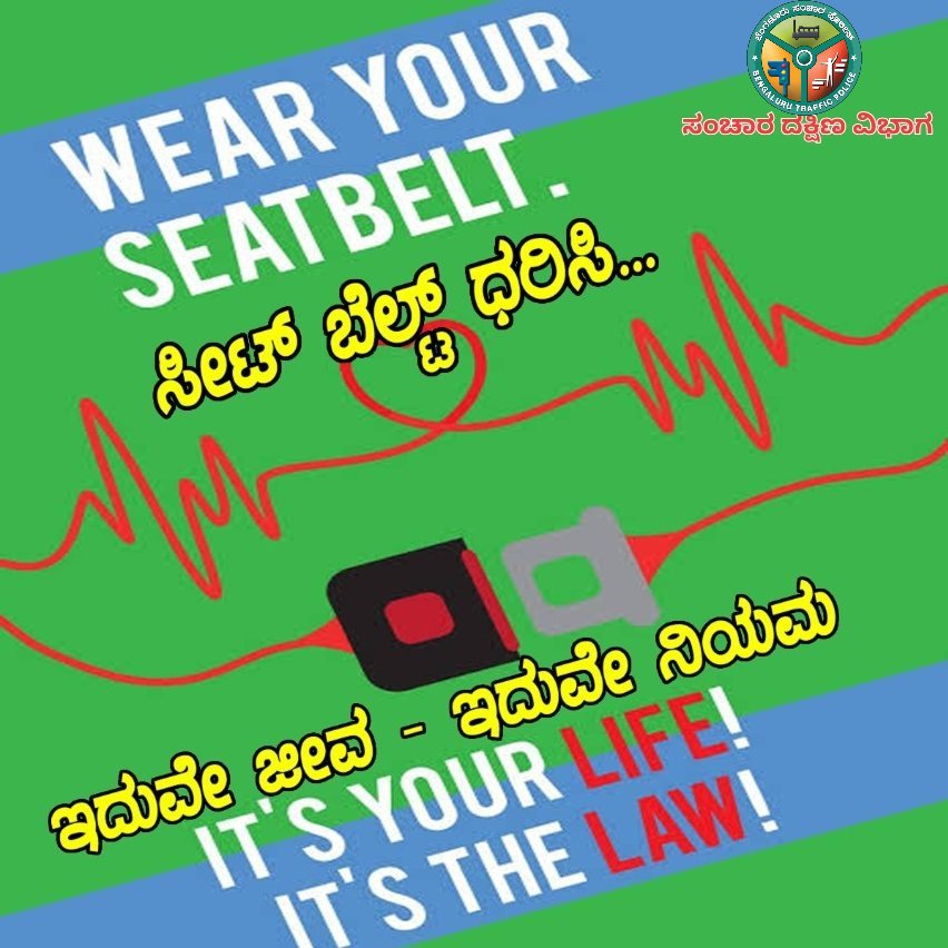 ವಾಹನ ಚಾಲನೆ ಸಂದರ್ಭದಲ್ಲಿ ಕಡ್ಡಾಯವಾಗಿ ಸೀಟ್ ಬೆಲ್ಟ್ ಧರಿಸಿ.