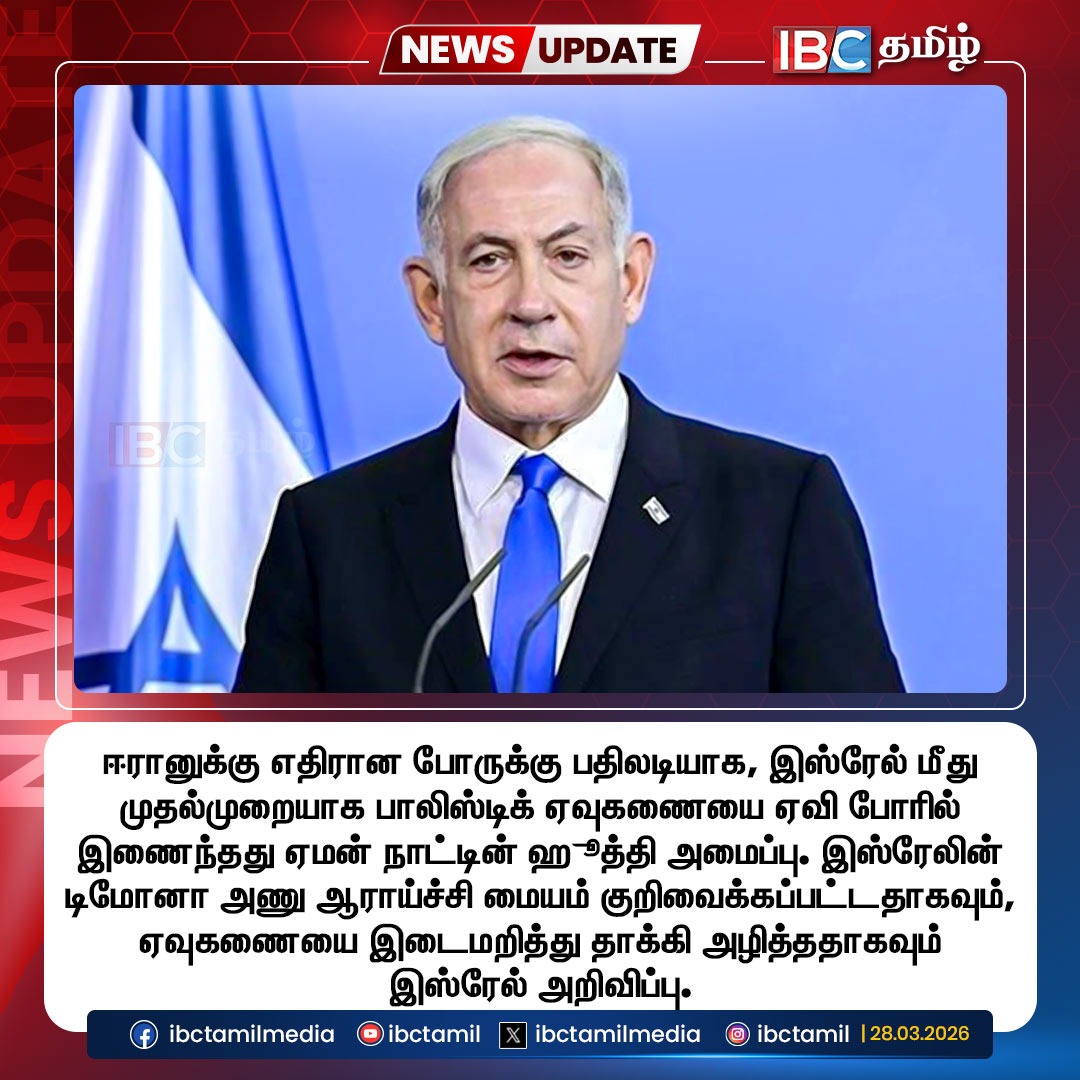 ஈரானுக்கு எதிரான போருக்கு பதிலடியாக, இஸ்ரேல் மீது முதல்முறையாக பாலிஸ்டிக் ஏவுகணையை ஏவி போரில் இணைந்தது ஏமன் நாட்டின் ஹூத்தி அமைப்பு.
