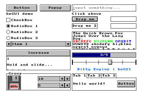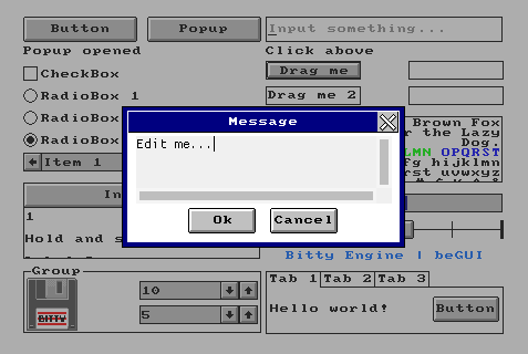 beGUI v1.7.1 is now available. This release introduces a new DropdownComboBox widget, adds a Calc structure for layout to support expressions like "100%-10px", along with numerous improvements and bug fixes.
