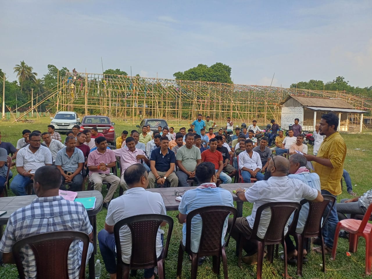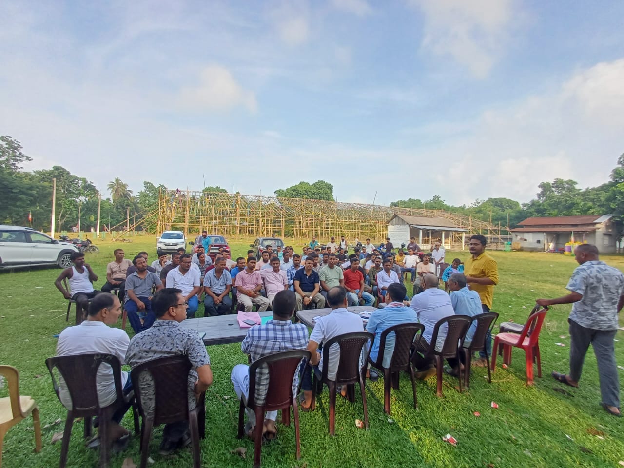 Reviewing the preparation for #VijaySankalpSamaroh on 10.08.25, to be addressed by HCM Himanta Biswa Sarma at Laxmi Mandir Feild, #Block_C , #dihira , #Baksa..