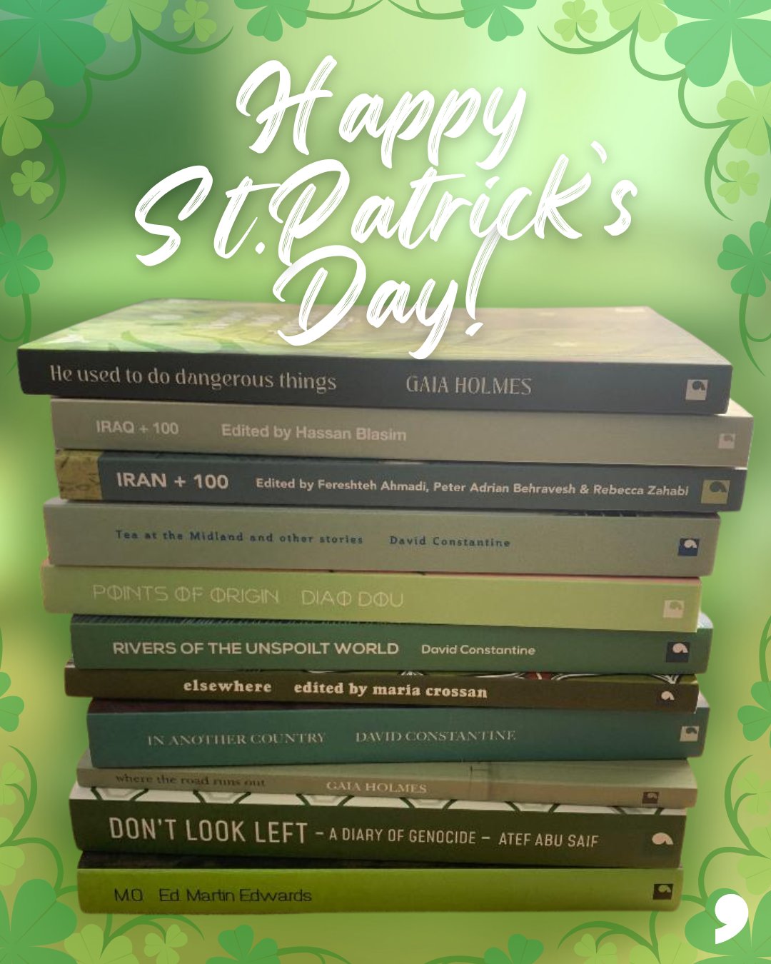 Comma Press🍉 #CeasefireNow @commapress · Mar 17 Happy #StPatricksDay from Comma Press! 🍀📗 We're celebrating with a green #bookstack filled with stories from the world overS1 3 126