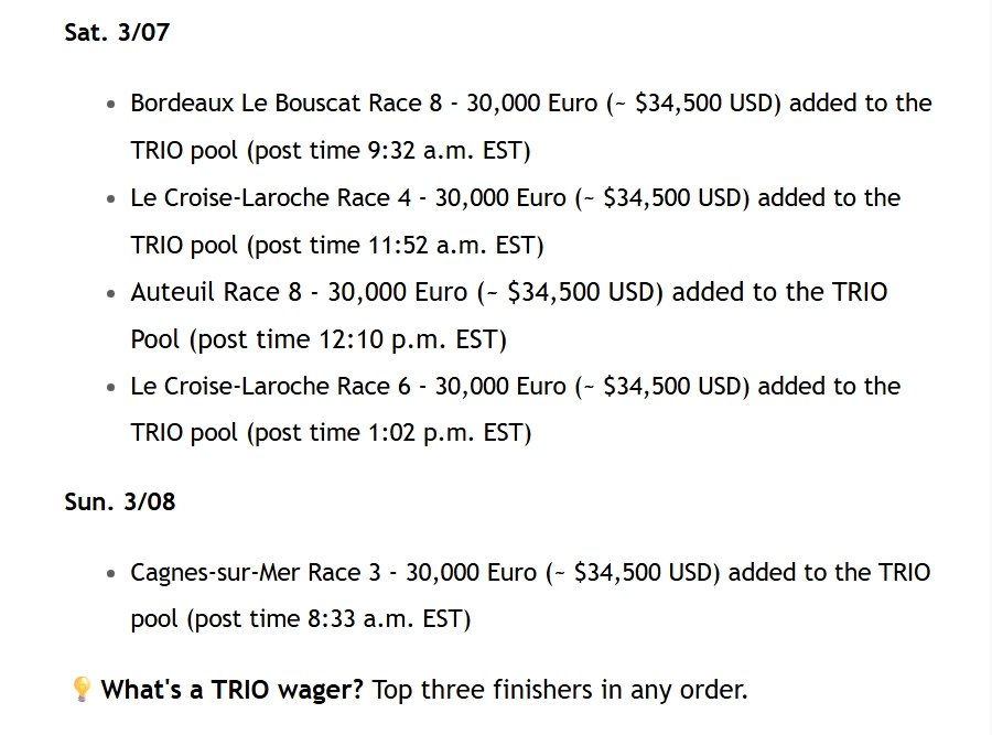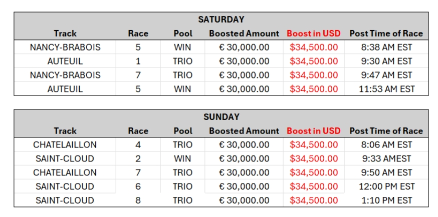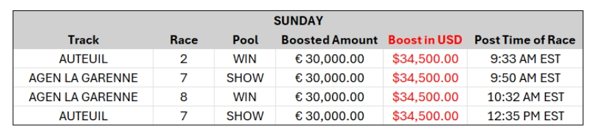 Get paid more money in payouts with boosted pools from France right NOW! Play with seeded pools and get bigger payouts! Don't miss out on your chance to play racing from France with AmWager now! Check out where and what to play! β¬οΈ #France #FrenchRacing #BoostedPools #AmWager