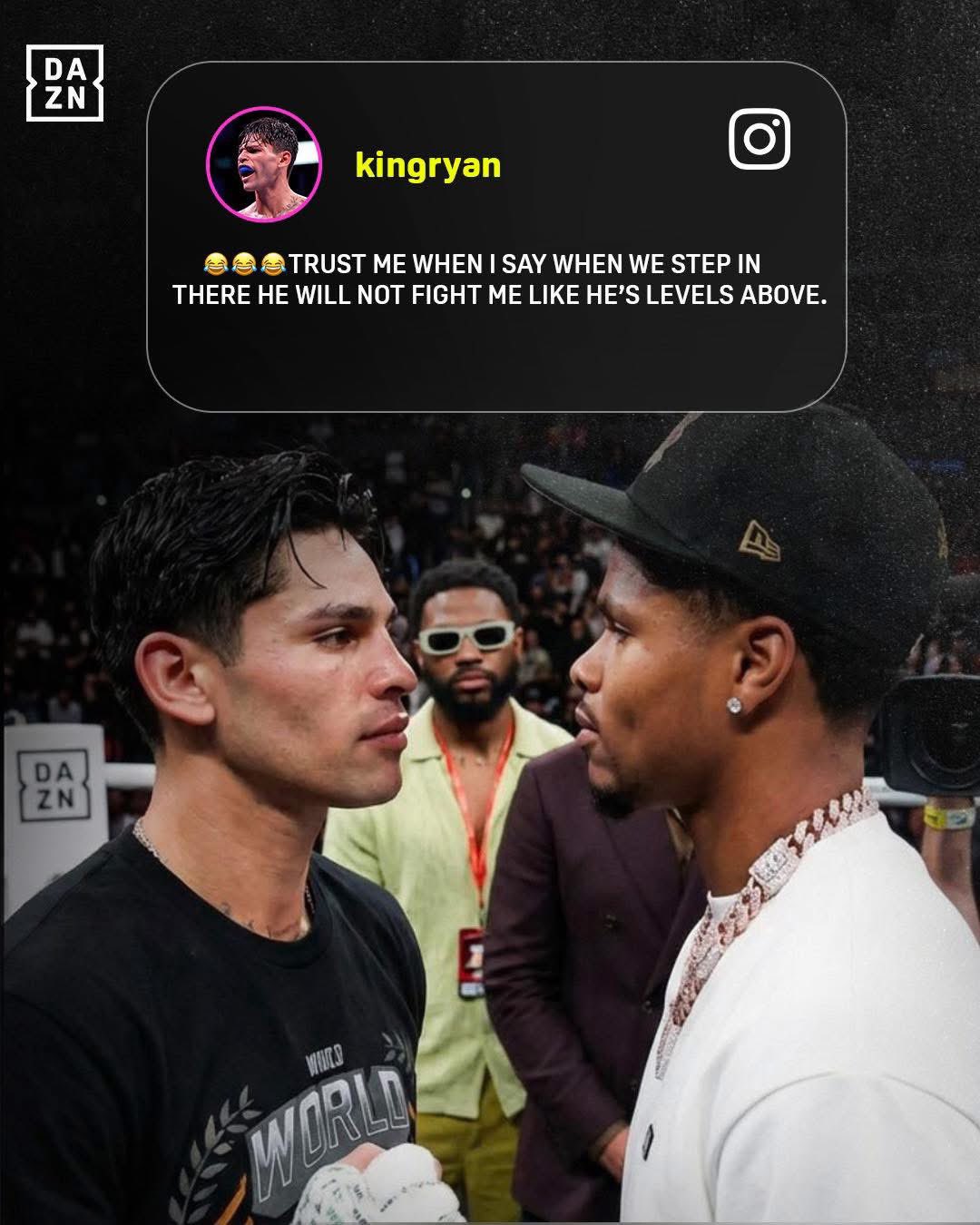 Ryan Garcia fires back at Shakur Stevenson: "Trust me when I say when we step in there, he will not fight me like he’s levels above." 😤