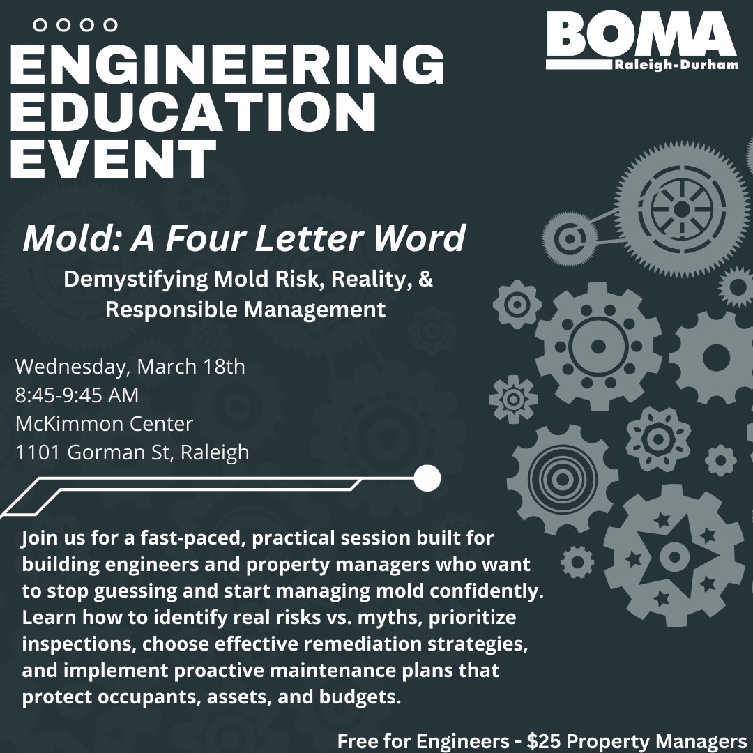 #BOMARaleighDurham #BuildingEngineering #FacilityManagement #MoldRisk #BOMA