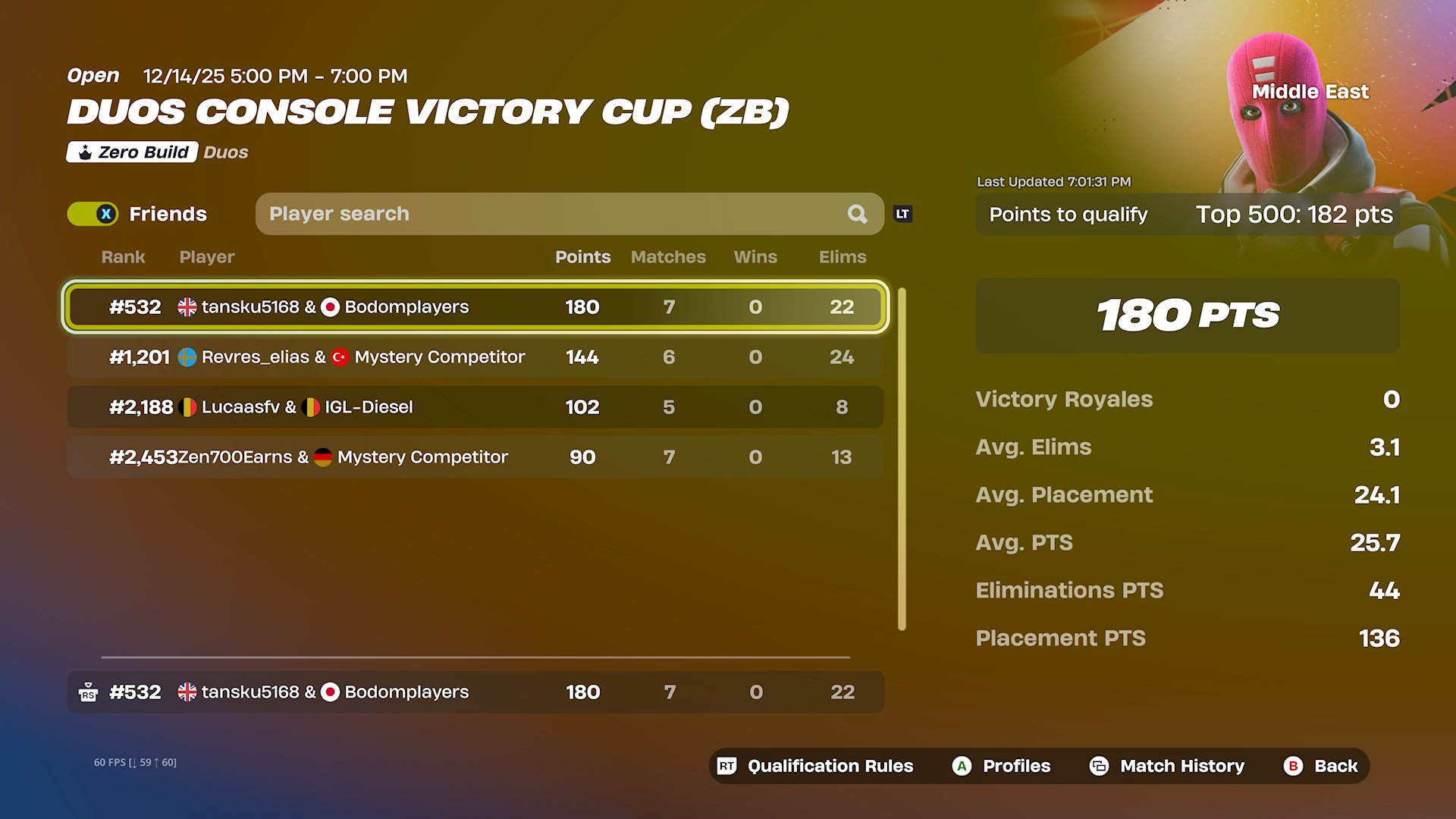 #532 place in the solo ranked cup today😁😁😁