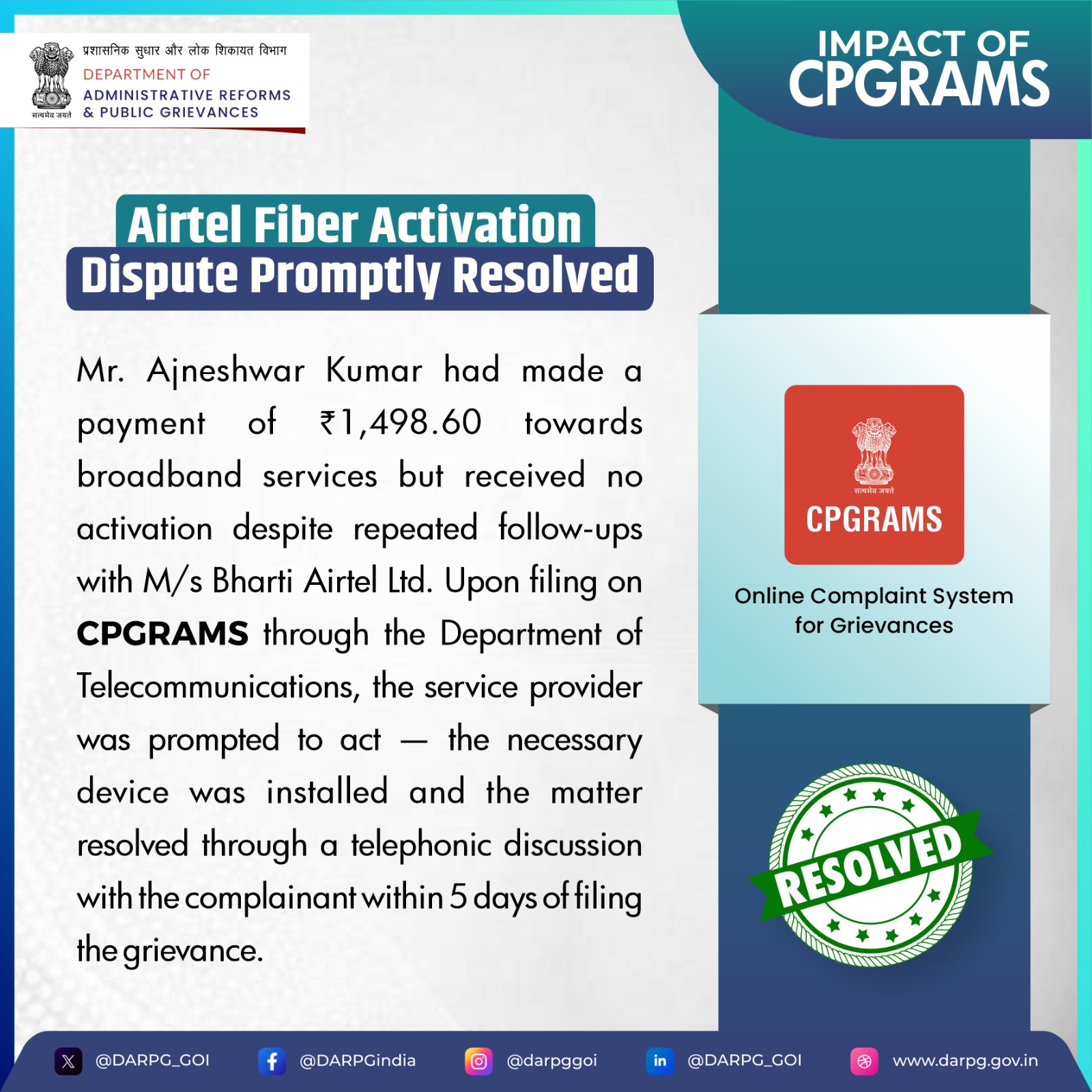 #CPGRAMS #GoodGovernance #GrievanceRedressal #CitizenFirst #DigitalIndia #PublicService