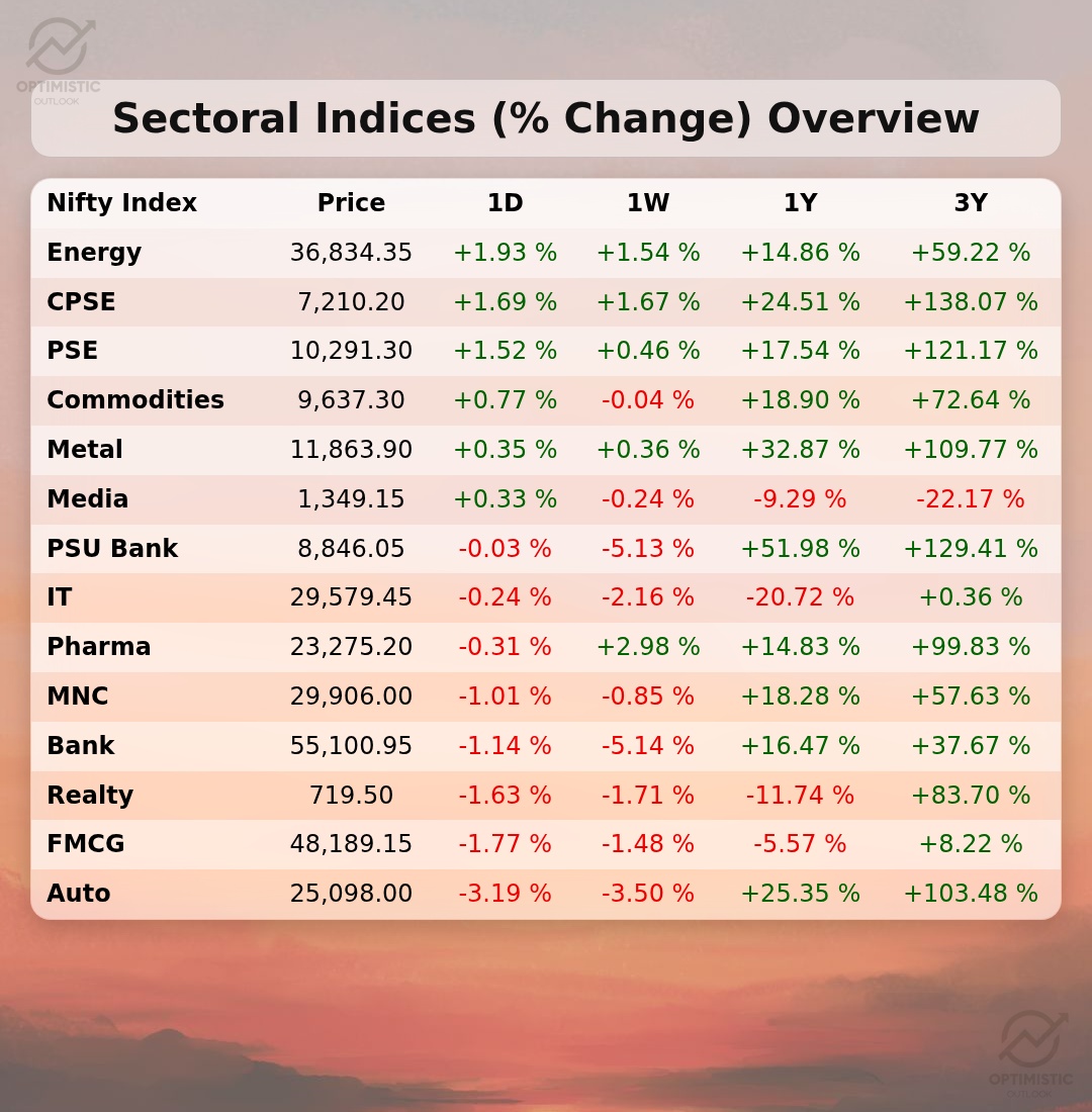 🚨 Sectoral Indices Overview at 16:00 Hrs, 27-Mar-2026