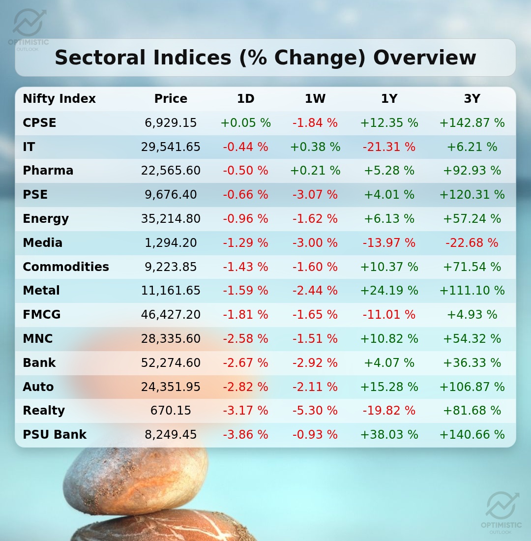🏠 Nifty Realty suffers a sharp daily decline, hitting sector hard. #Realty