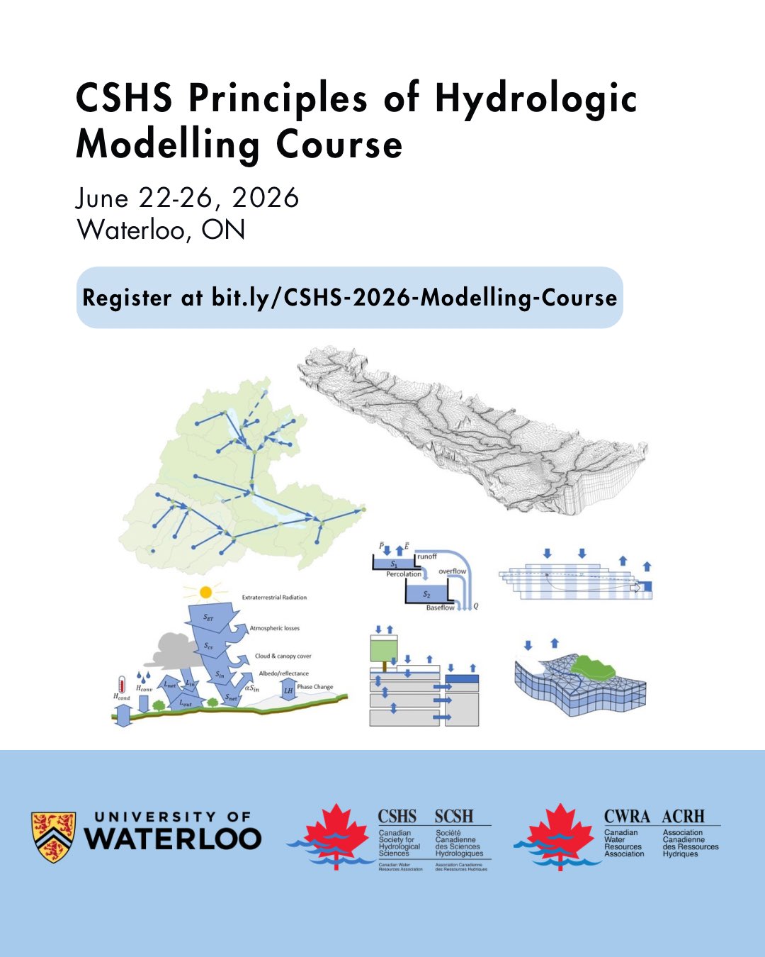 📣 We are thrilled to announce that registration for the #CSHS Principles of Hydrologic Modelling Course is now open!