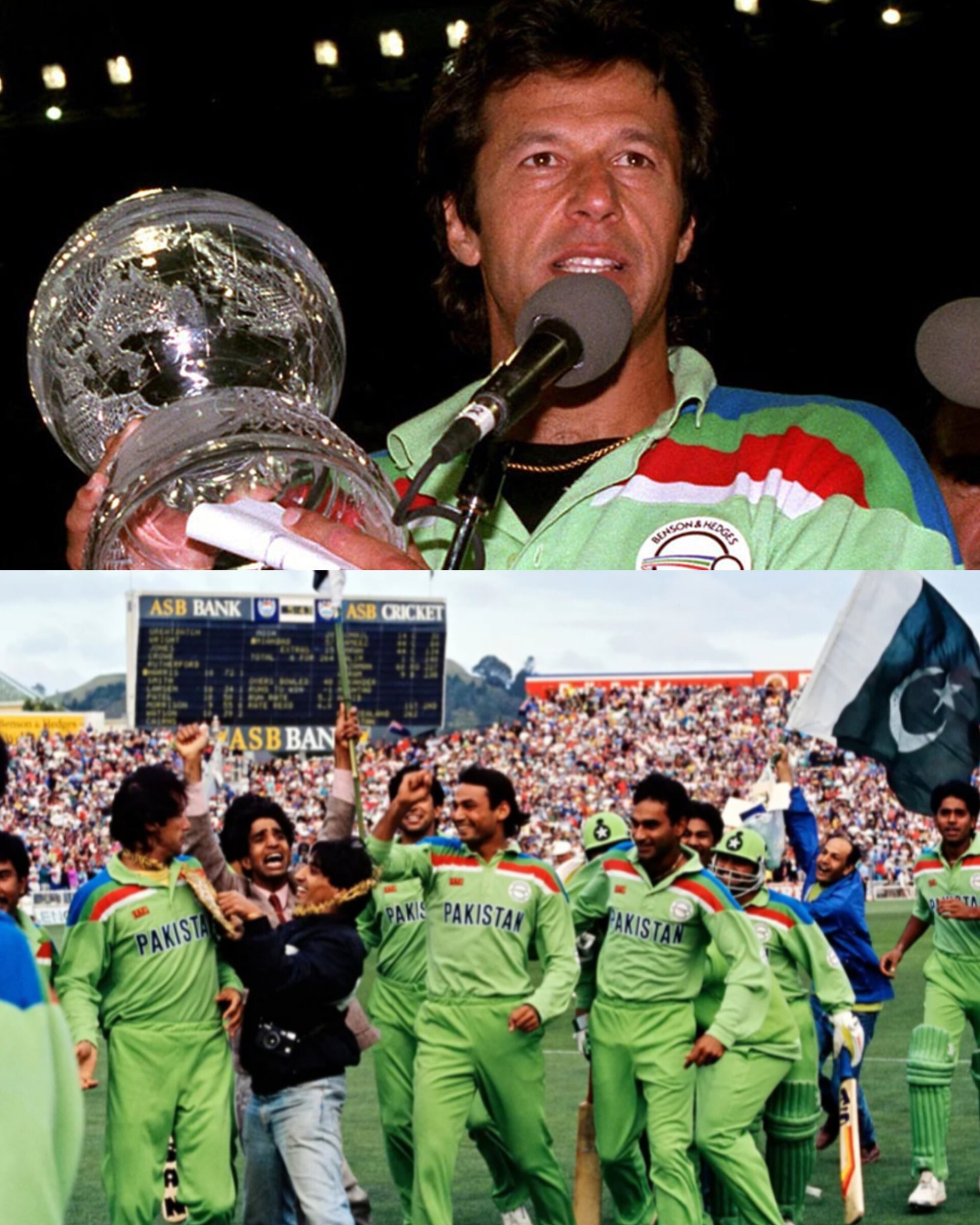 #OnThisDay in 1992, Pakistan won the Cricket World Cup - #CWC Title under the leadership of Imran Khan by defeating England in the Final 🏆️🙌