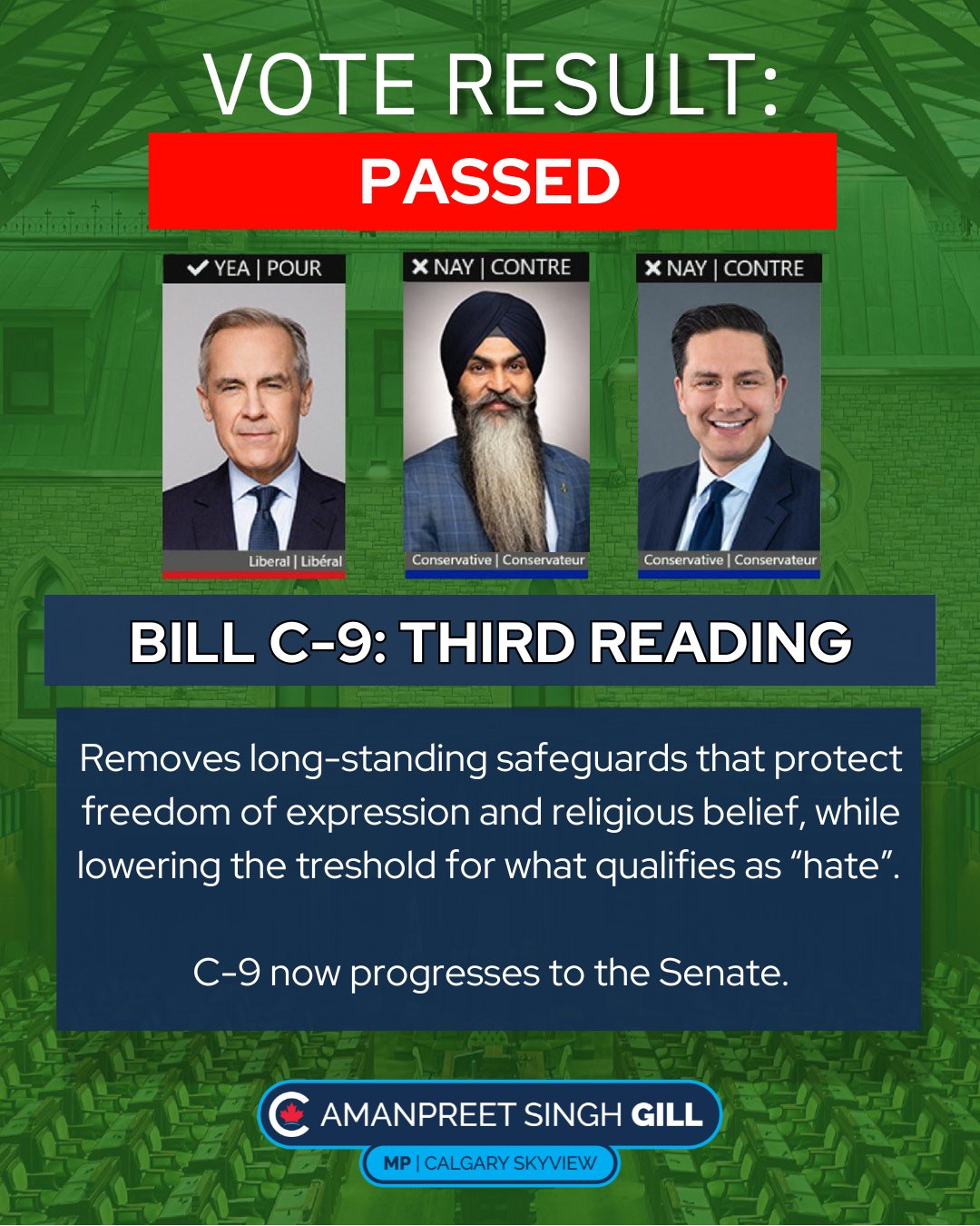 Liberals, backed by the Bloc, pushed it through despite concerns from Calgary-Skyview and across Canada.
