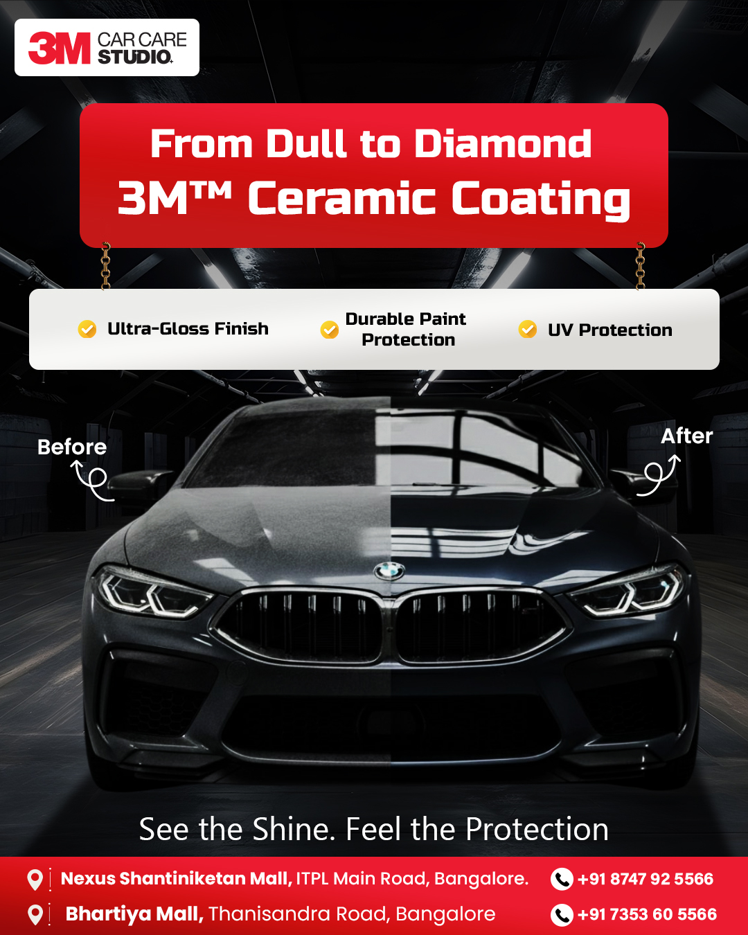 Transform dull paint into diamond gloss with 3M Ceramic Coating in Bangalore for UV defense and durable protection.