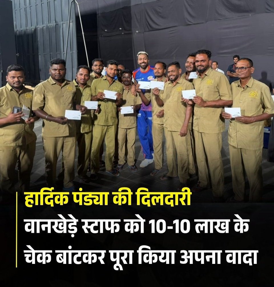 मुंबई इंडियंस (MI) के कप्तान ने विश्व कप से पहले वानखेड़े में देर रात तक जमकर अभ्यास किया हमारे पसंदीदा खिलाड़ी और हमारे देश की शान ने ग्राउंड स्टाफ को 10 -10 के चेक देकर अपना वादा पूरा किया हमारे खिलाड़ी का दिल बहुत बड़ा है